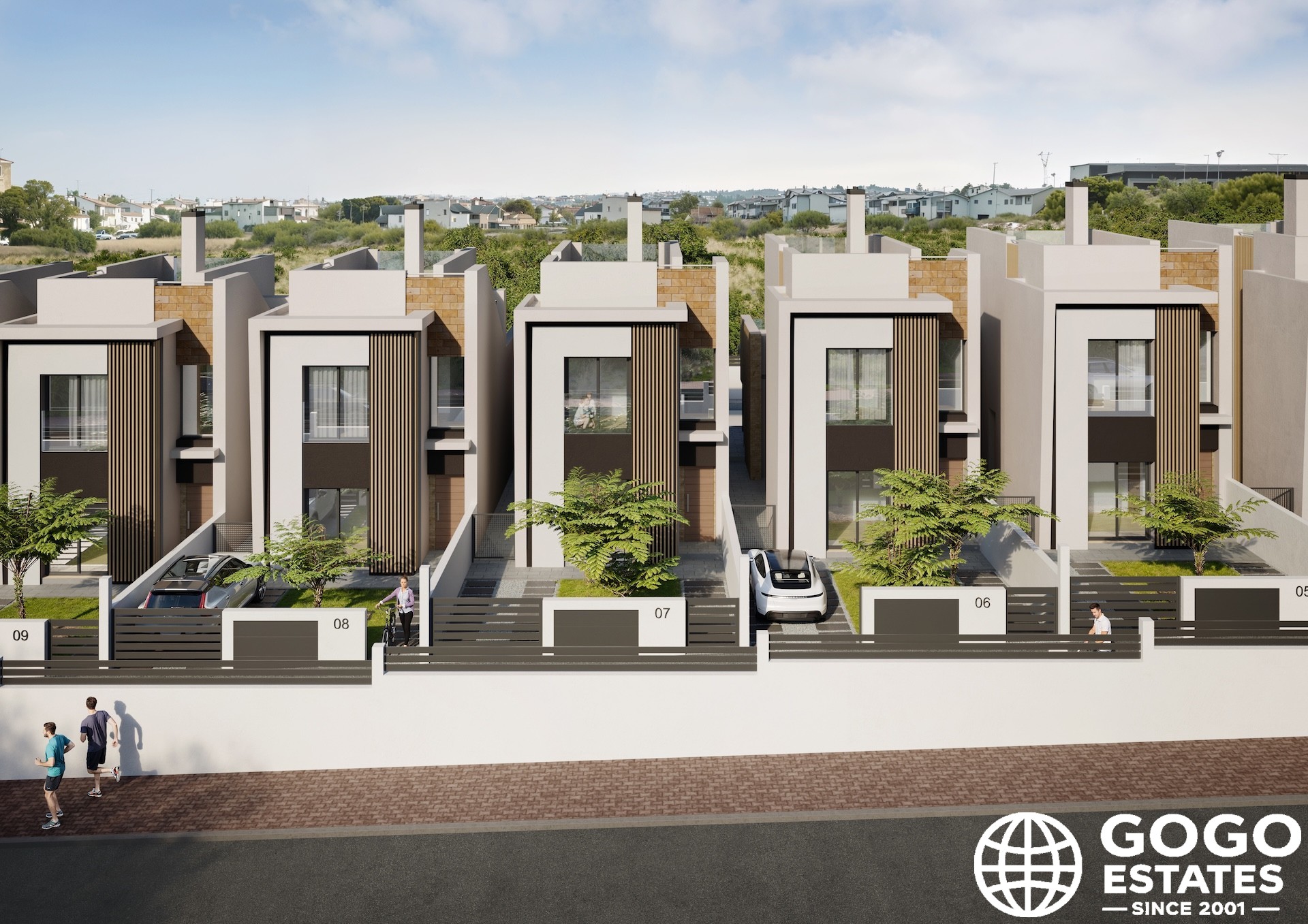 Das Innere der Reihenhäuser ist so gestaltet, dass es maximalen Komfort und Funktionalität bietet. Mit drei Schlafzimmern und drei Bädern ist jedes Zuhause mit modernen Annehmlichkeiten ausgestattet, die ein überragendes Wohnerlebnis gewährleisten. Zu den Merkmalen gehören Porzellanfliesen, Klimaanlage, Fußbodenheizung, elektrische Rollläden und eine Video-Gegensprechanlage.