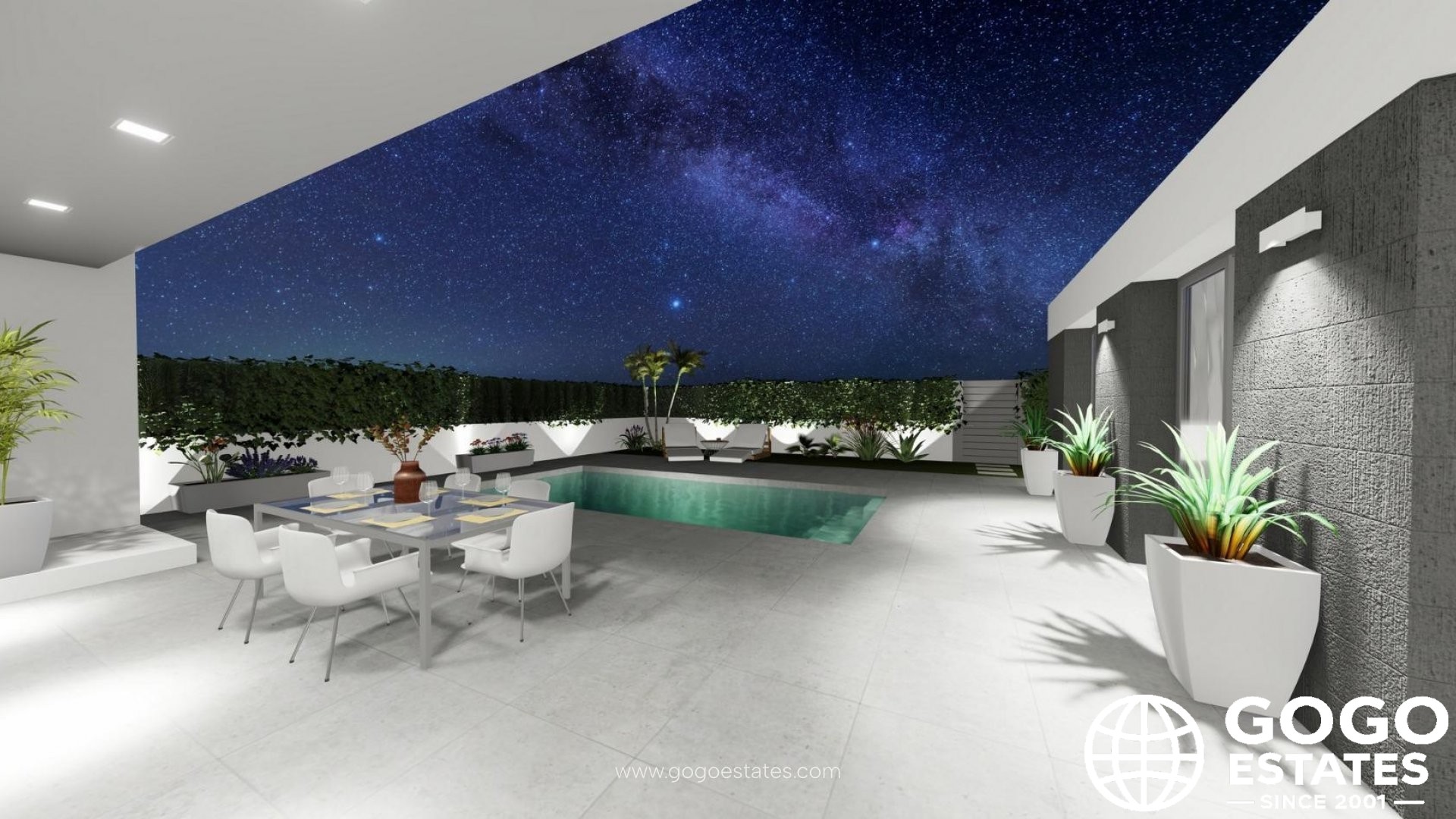 Die Villen verfügen über einen privaten Pool mit Beleuchtung, ein Solarium mit einer Sommerküche und einen Gartenbereich mit Kunstrasen. Genießen Sie den Komfort von eingebauten Geräten in der Küche, elektrischen Jalousien in den Schlafzimmern und LED-Beleuchtung im gesamten Haus.