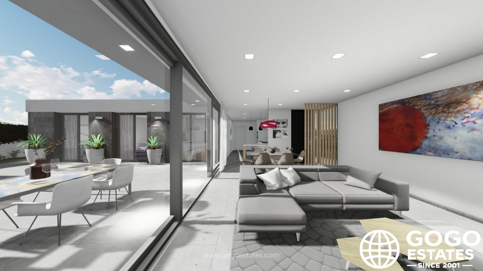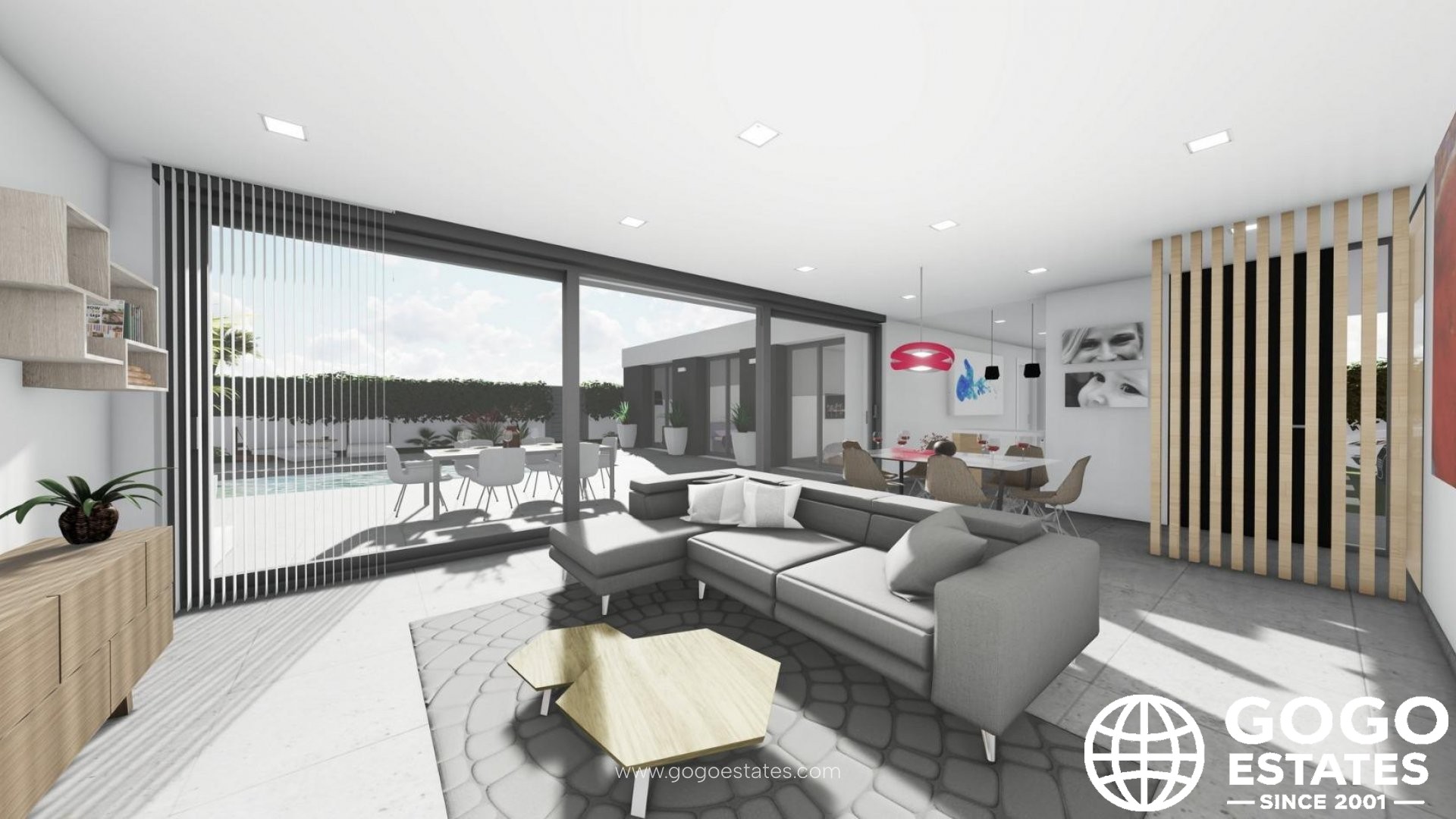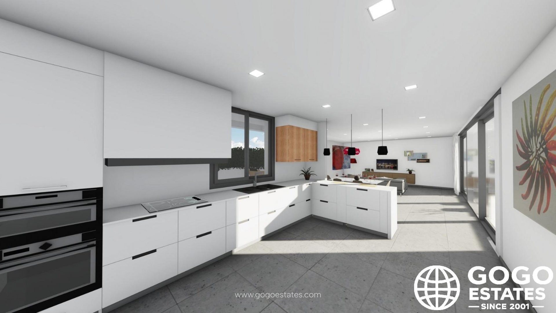 Zusätzliche Merkmale sind die Vorinstallation für Klimaanlagenkanäle und Photovoltaik-Module, hochsichere Schiebefenster und ein Parkplatz mit Kunstrasen.