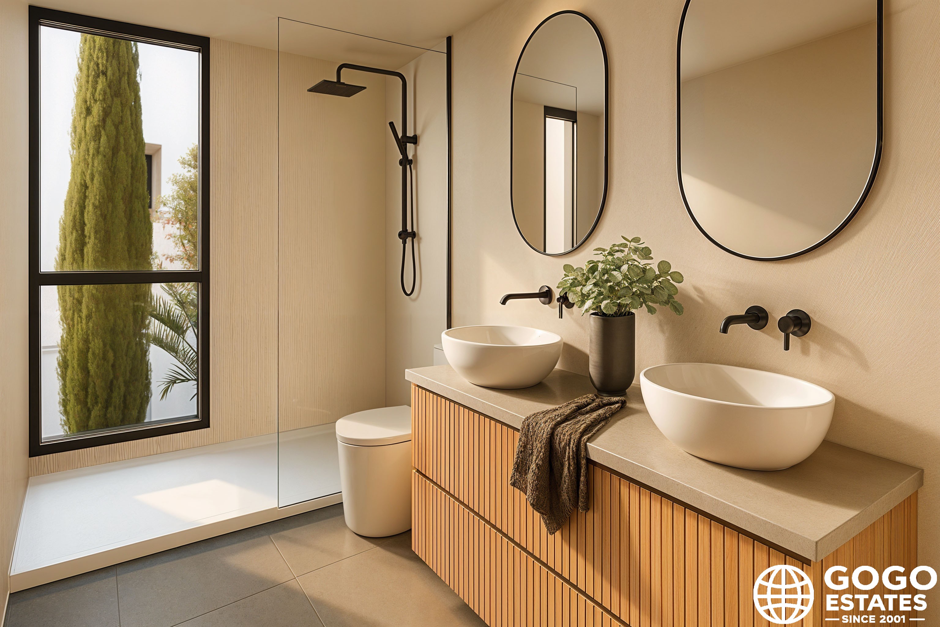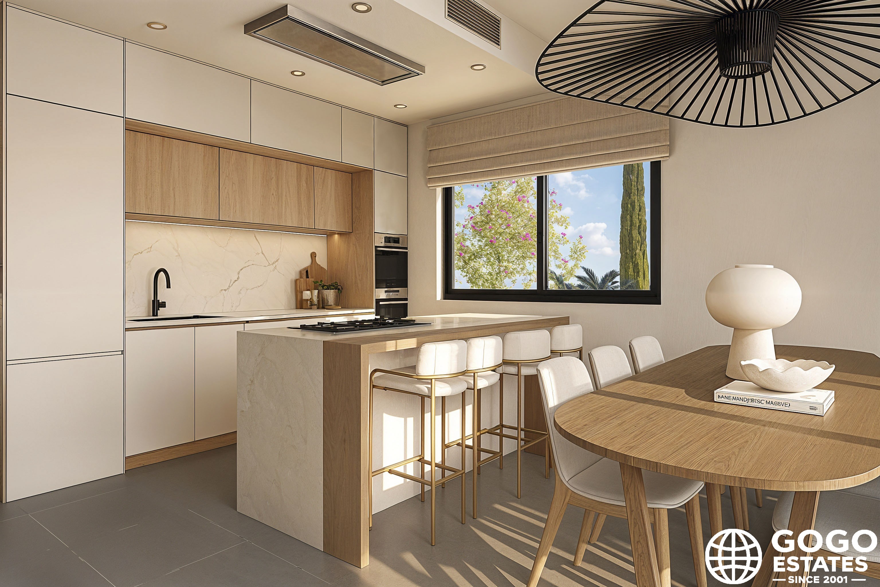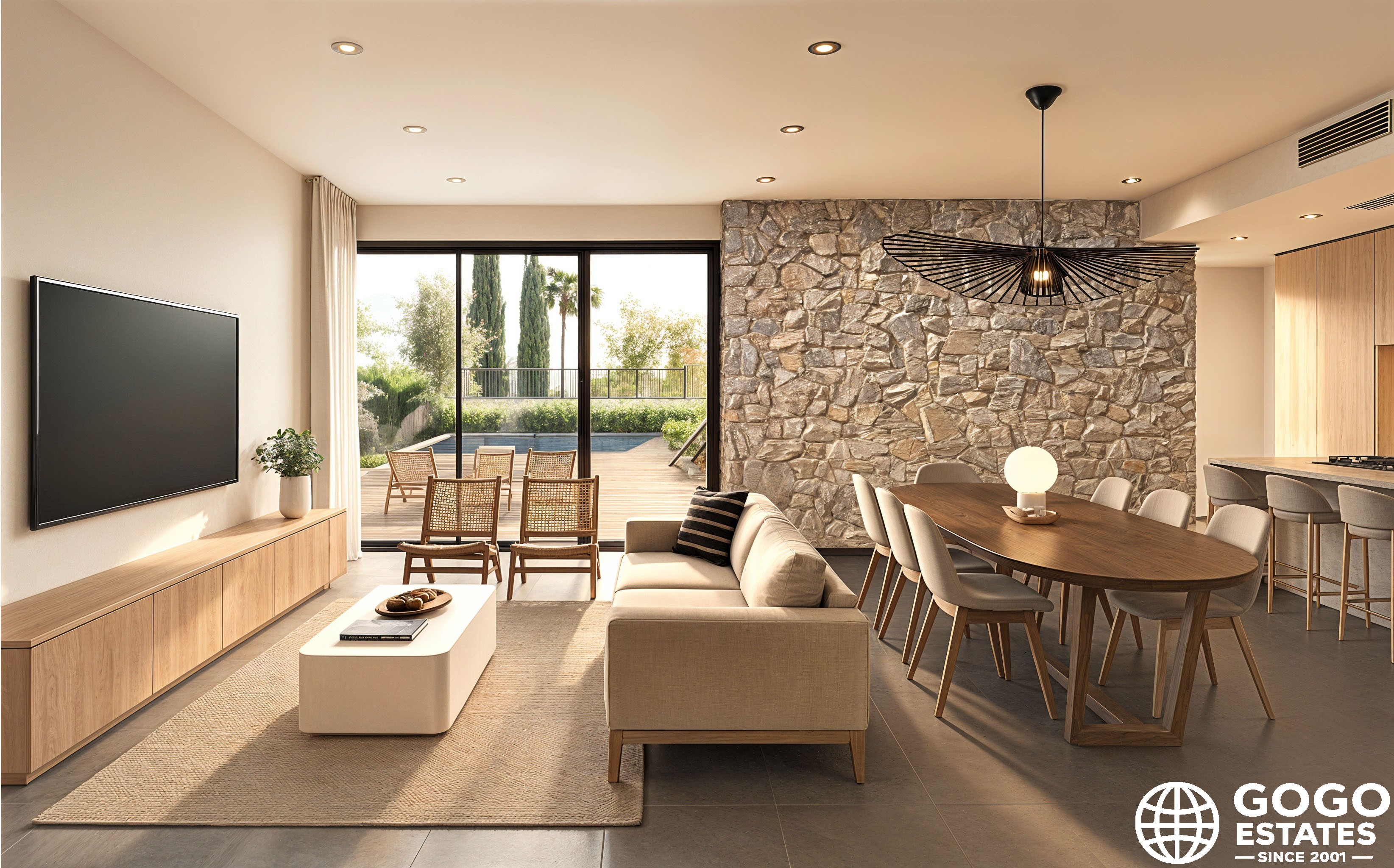 Das äußere Design dieser Häuser konzentriert sich darauf, außergewöhnlichen Wohnraum im Freien zu bieten. Jede Immobilie verfügt über einen privaten Garten, ideal, um Momente der Entspannung oder Aktivitäten im Freien zu genießen. Die Terrasse ist perfekt für Mahlzeiten im Freien oder einfach, um das mediterrane Klima zu genießen. Darüber hinaus hat jedes Haus einen privaten Pool, der eine persönliche Oase zum Abkühlen an warmen Sommertagen bietet. Die Einbeziehung eines Ladestationspunkts für Elektroautos spiegelt das Engagement für Nachhaltigkeit und Modernität wider.