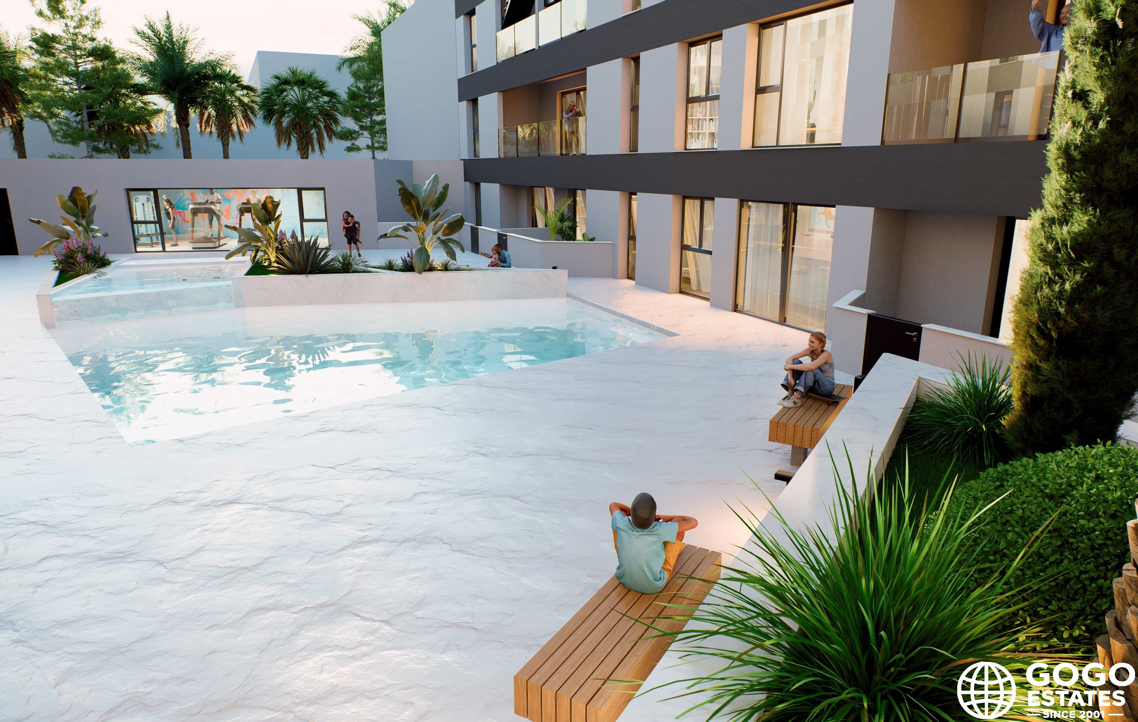 Die Bewohner können Gemeinschaftseinrichtungen wie ein Fitnessstudio, einen Pool und ein Solarium nutzen. Diese Einrichtungen fördern einen gesunden und aktiven Lebensstil und bieten alles, was für Freizeit und Entspannung benötigt wird.