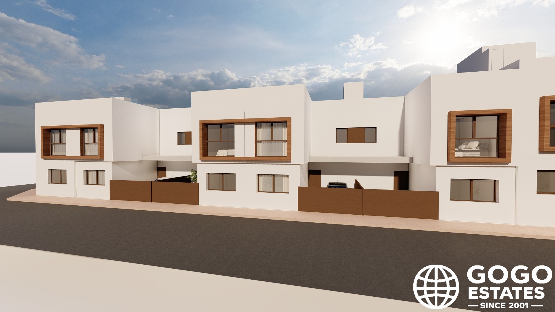 Das Innere der Reihenhäuser umfasst 3 Schlafzimmer und 3 Badezimmer. Keramikböden und eine voll ausgestattete Küche verbessern das tägliche Leben. Eingebaute Schränke bieten ausreichend Stauraum, während die vorinstallierte Klimaanlage ganzjährig für Komfort sorgt.