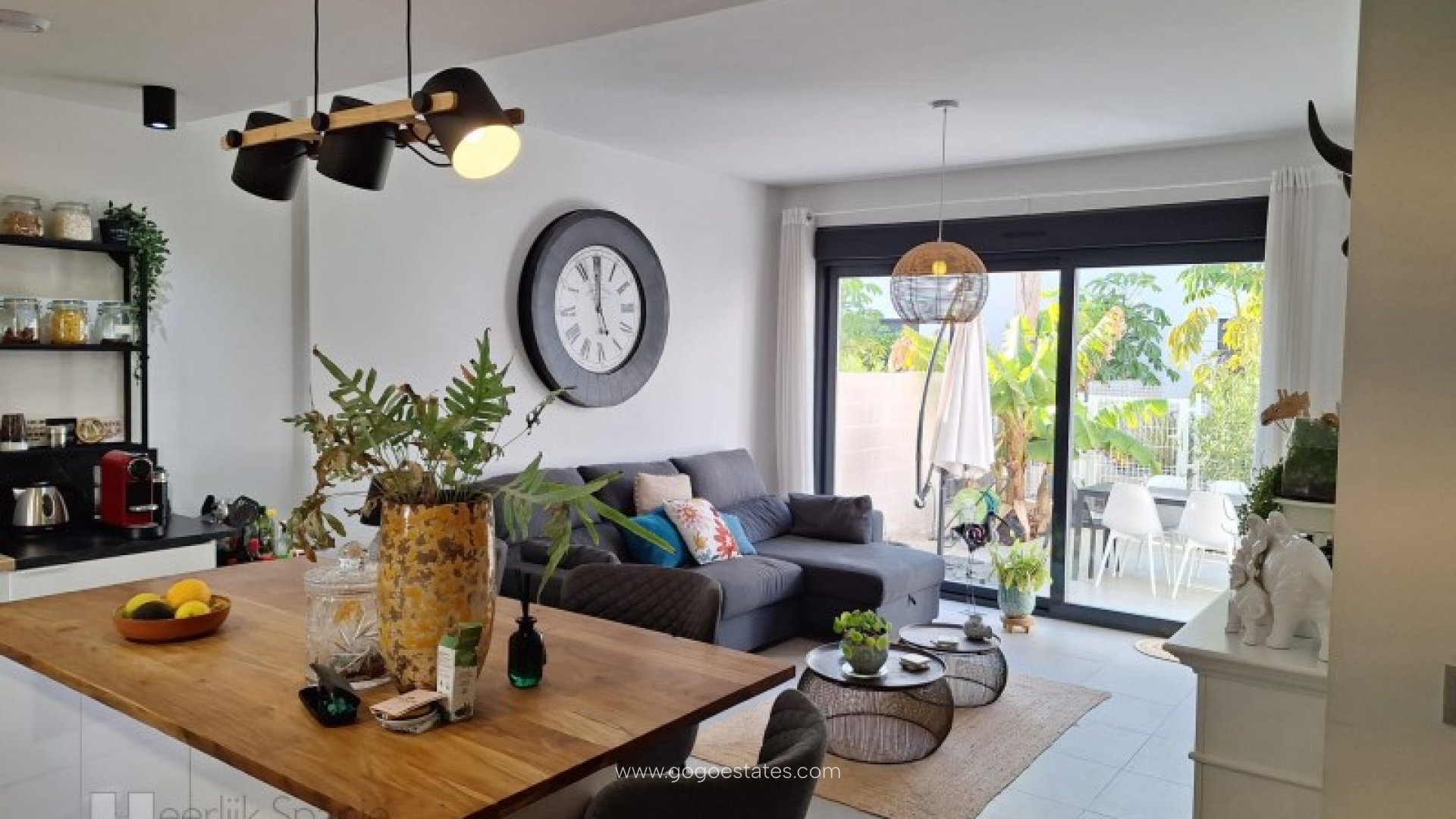 Este espacioso piso en planta baja (año de construcción 2022) con una superficie total de 186m², incluyendo 96m² de espacio habitable, 2 terrazas y aparcamiento privado, está a sólo 900 metros del mar. Situado en una calle tranquila, pero cerca de todo lo que necesita: el hermoso paseo marítimo, acogedores bares y restaurantes, supermercados y centros comerciales. Con 3 dormitorios, 2 baños, una cocina abierta y una piscina comunitaria, este piso ofrece la combinación perfecta de comodidad, tranquilidad y proximidad a la playa. Gracias a las dos terrazas con diferentes orientaciones (sureste y oeste), podrá elegir entre sol o sombra a cualquier hora del día. Interior - Superficie habitable: ± 85m². - 3 dormitorios con aire acondicionado (frío/calor), calefacción y persianas - 2 cuartos de baño con ducha de lluvia - Cocina abierta equipada con horno, microondas, frigorífico/congelador, ... - Trastero con espacio para lavadora, secadora y espacio de almacenamiento adicional - Aire acondicionado (frío y calor) en toda la casa Exterior - Jardín: ± 38m² (dentro del complejo con orientación este-sur) - Terraza delantera: ± 50m² (lado calle, orientación oeste) - Aparcamiento privado: ± 14m². - 2 amplias terrazas con diferentes orientaciones - siempre a elegir entre sol o sombra - Posibilidad de aparcamiento privado - Posibilidades adicionales de aparcamiento gratuito en la calle - Gran piscina comunitaria - Parque infantil y campo de fútbol a 300m Medio ambiente Santiago de la Ribera se encuentra en el Mar Menor, una hermosa laguna de aguas poco profundas y cálidas, ideal para familias y amantes de los deportes náuticos. El largo paseo marítimo bordeado de palmeras es perfecto para relajarse paseando por la costa, mientras que las playas de arena fina invitan a pasar el día tomando el sol y bañándose. Esta acogedora localidad costera combina el encanto de una comunidad pesquera tradicional con las comodidades modernas. A poca distancia se encuentran numerosos bares de tapas, marisquerías y tiendas. Los miércoles, el mercado semanal tiene lugar a sólo 500m del apartamento, donde podrá comprar productos locales frescos. - A 900 m del mar, ideal para los amantes de la playa. - A 300 m de un camping con servicio de desayuno y pista de petanca - A 500 m del mercado local de los miércoles - A 2km del centro comercial Dos Mares - con supermercados, tiendas de ropa y restaurantes - A 2 km de los baños de lodo de Lo Pagán, famosos por sus propiedades terapéuticas. - A 3 km de las lagunas de sal rosa y Salinas, donde se pueden ver flamencos - A 20 min en coche del centro comercial al aire libre La Zenia - A 30 min del aeropuerto de Murcia - Corvera y a 1 hora del aeropuerto de Alicante - ... Atención: Las fotos son de la casa piloto y corresponden en gran parte. Fotos nuevas y adicionales seguirán pronto. #ref:HS_45