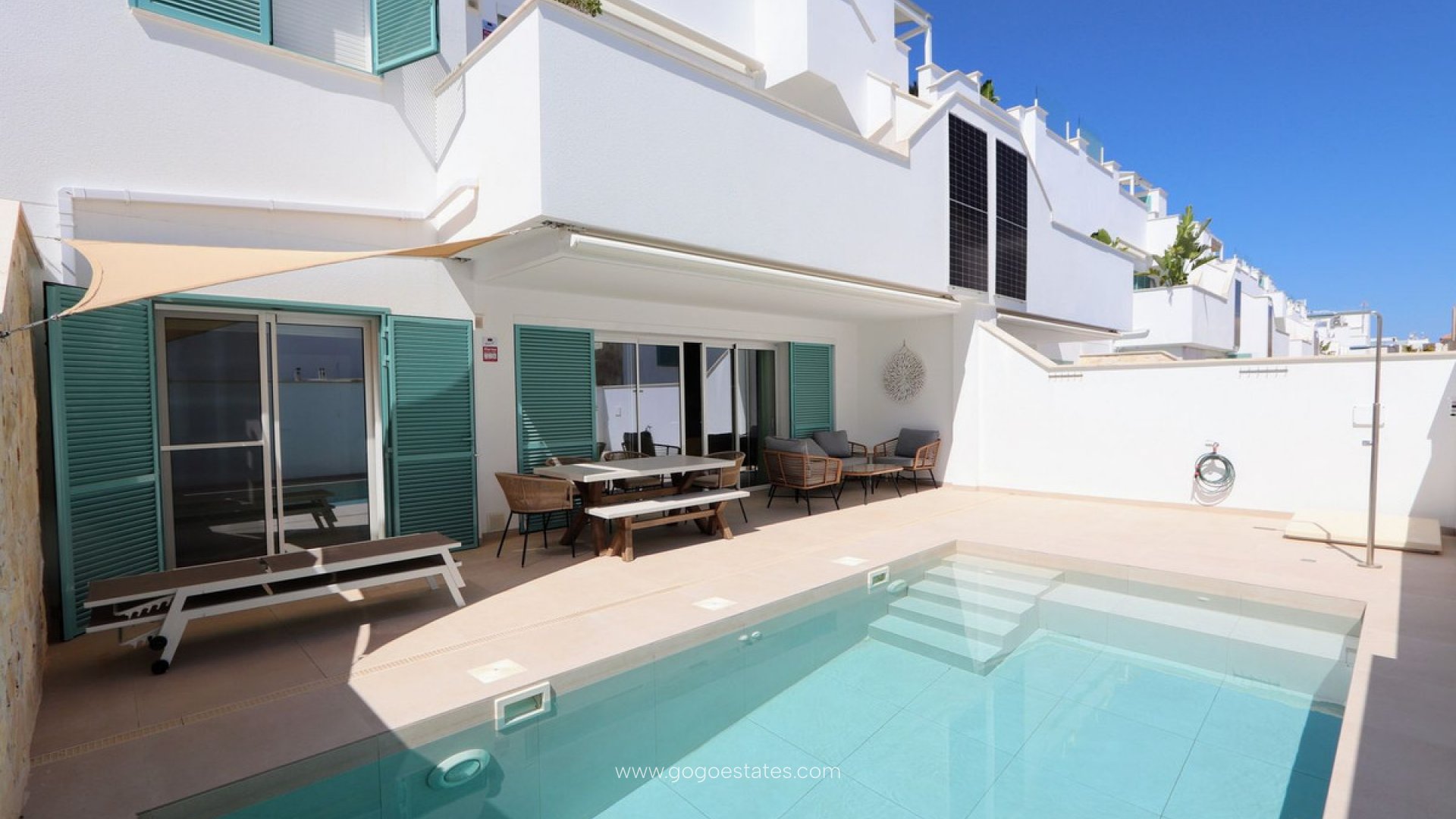 Nos complace presentar este precioso apartamento en planta baja de nueva construcción, situado en la codiciada zona de Torre de la Horadada, a solo 450 metros de la playa. Esta propiedad cuenta con tres dormitorios, dos baños, salón-comedor y cocina totalmente equipada. También encontrará una amplia y soleada terraza con piscina privada, así como una terraza adicional con césped artificial. El apartamento también dispone de aire acondicionado y se vende completamente amueblado. Torre de la Horadada es un encantador pueblo español que ofrece una variedad de restaurantes y bares, un agradable puerto y varias playas de arena, perfectas para pasear al atardecer y disfrutar del estilo de vida español. Para quienes buscan un poco más de actividad, el pueblo de Pilar está a poca distancia en bicicleta. Los amantes del golf apreciarán el cercano campo de golf, ubicado a solo 10 minutos en coche. Esta zona está experimentando un importante crecimiento e inversión. Además, Zenia Boulevard, el centro comercial más grande de la costa, está a 10 minutos en coche.