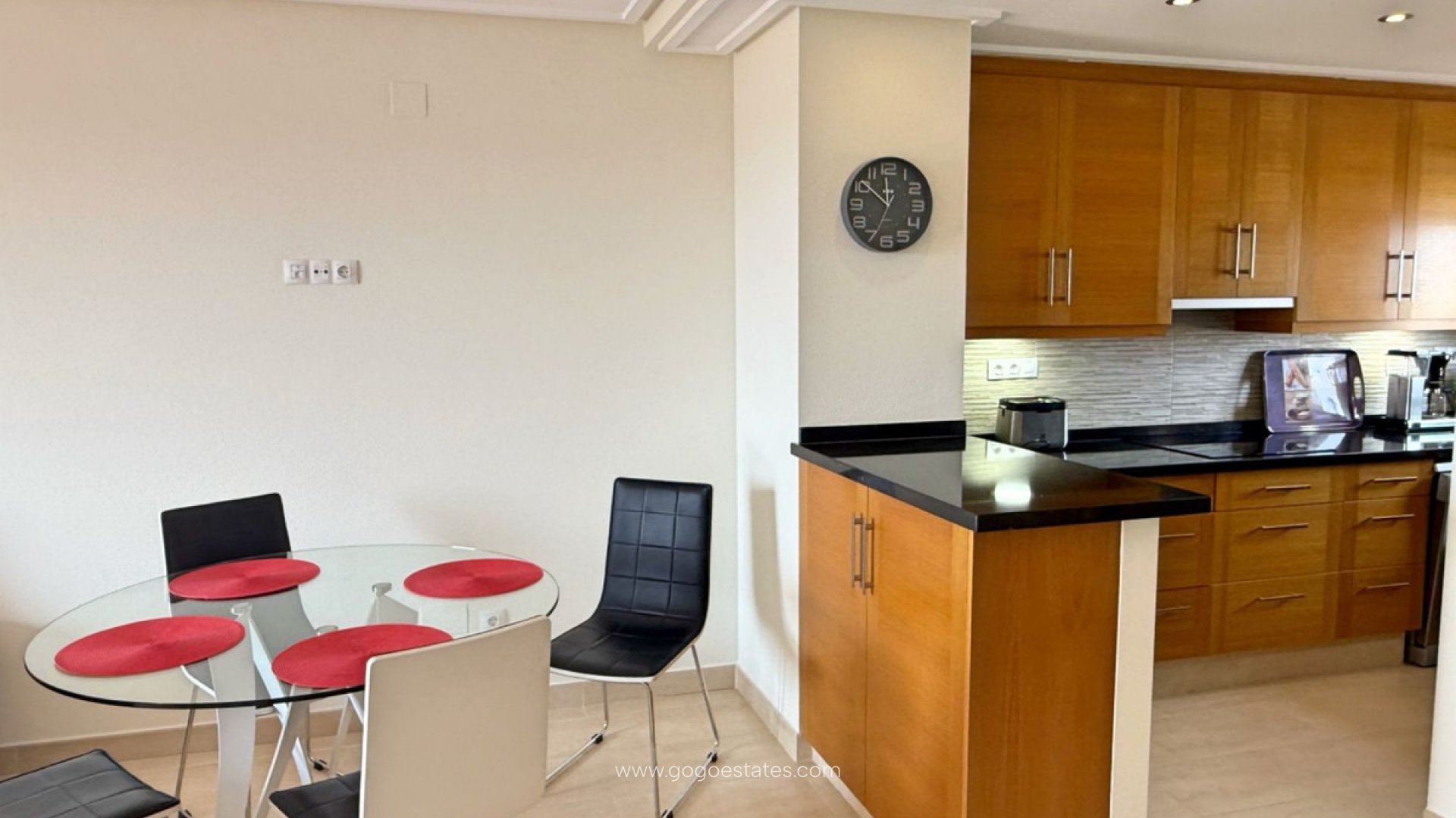 Impresionante ático en Los Dolses, Orihuela Costa Vista Azul XVII, bienvenido a este ático único. Este apartamento en la última planta ofrece una vida de lujo con su terraza privada en la azotea y vistas impresionantes. El apartamento cuenta con salón-cocina, dos amplios dormitorios con hermosos suelos de parquet de roble. El baño incluye una esquina de ducha y una lavadora, además de un aseo independiente. El apartamento está equipado con calefacción por suelo radiante y aire acondicionado central, lo que garantiza una temperatura cómoda durante todo el año. El apartamento se vende completamente amueblado y equipado, lo que permite mudarse sin preocupaciones. Un gran balcón orientado al sur y la terraza privada en la azotea ofrecen mucho espacio para disfrutar del sol y el aire fresco. El apartamento también incluye un espacioso espacio de garaje y almacenamiento. La comunidad residencial cuenta con una impresionante área de spa con piscina cubierta y sauna finlandesa. En el exterior, hay otra piscina, zonas verdes y un área de juegos para niños. El área de la piscina también es fácilmente accesible. La ubicación es excelente, a pocos pasos de la playa y del centro comercial más grande de la zona. ¡Bienvenido a explorar esta magnífica casa!