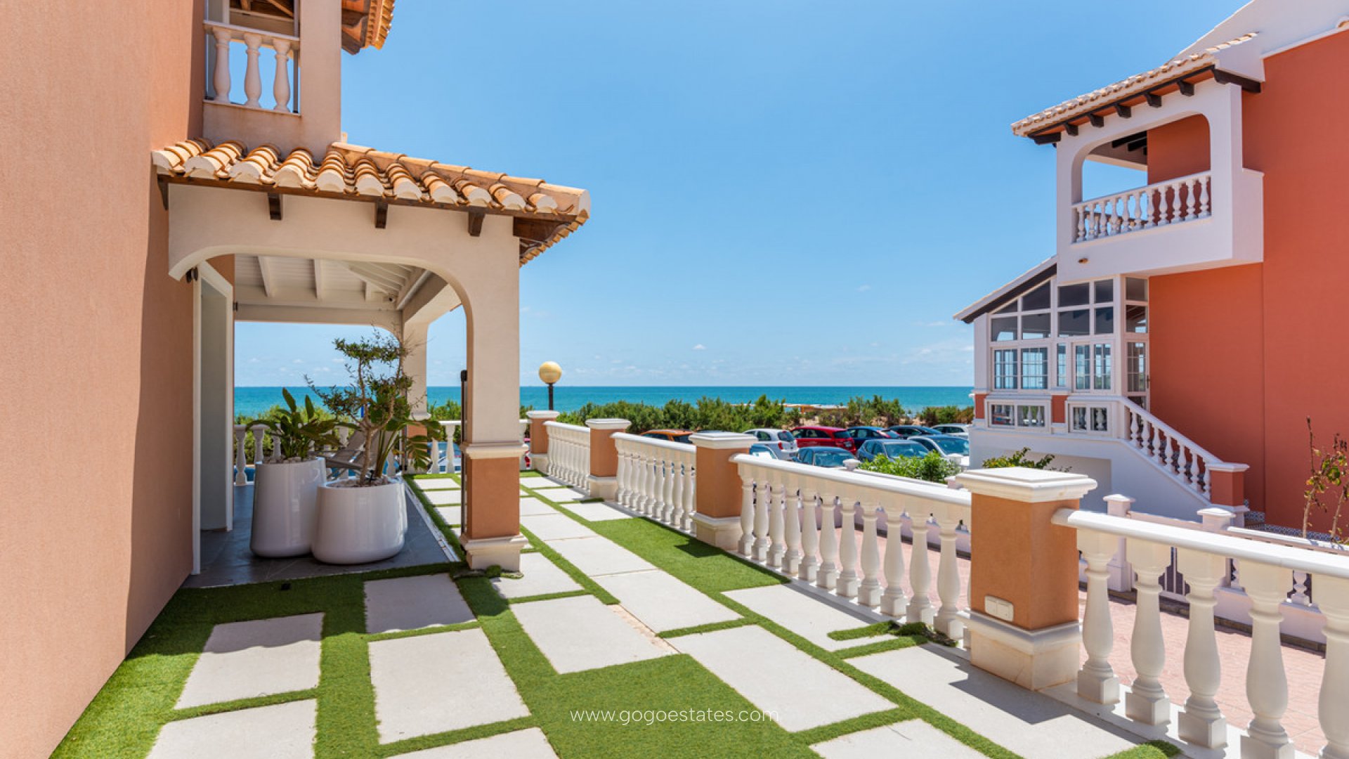 Increíble adosado de lujo frente al Mar Mediterráneo Esta propiedad, recientemente reformada en 2021, cuenta con unas vistas panorámicas a unas de las playas más bonitas de la Costa Blanca, la Playa de la Roqueta en Guardamar. Del Segura. Se trata de una playa abierta, que linda con la playa Centro por el norte y con la playa del Moncayo por el sur.La vivienda forma parte de un complejo residencial (Residencial Benamor) y goza de una perfecta orientación que permite aprovechar el clima mediterráneo a la perfección. Los acabados de la vivienda están escogidos con suma delicadeza, con un equipamiento de marcas de prestigio con que dota a la casa de una sensación de calidad y diseño.La propiedad se vende totalmente amueblada, incluidos los electrodomésticos. Todo el mobiliario y la decoración de la vivienda es de fabricantes y artistas de prestigio internacional. En la planta semisótano de la propiedad encontramos un amplio salón, gimnasio, 3 dormitorios, 2 baños y un lavadero con mucho espacio par almacenamiento. En la planta principal encontramos un salón comedor a dos alturas, que goza de unas amplias vistas al mar. Además, en esta planta encontramos una cocina americana de diseño italiano totalmente acabada y dotada de equipamiento de las mejores marcas. La planta primera de la vivienda cuenta con una habitación principal, con baño y balcón. También 2 dormitorios más y 1 baño. La vivienda cuenta también con una increíble terraza cubierta con vistas al mar y un patio trasero con orientación oeste y una superficie de 42m2.