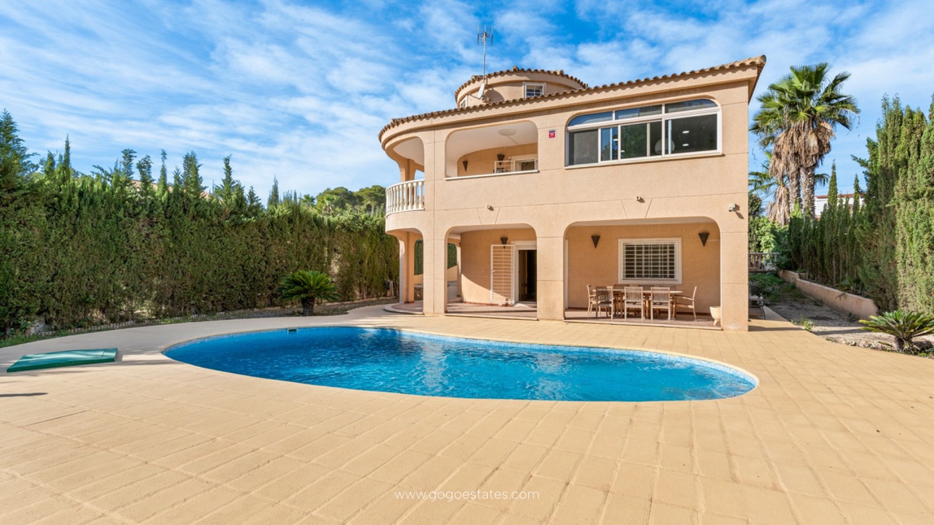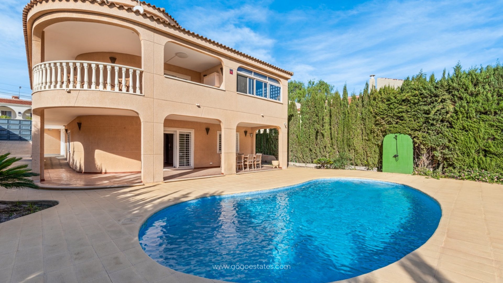Ubicada en la zona residencial de Los Balcones, esta villa ofrece un diseño práctico para la vida familiar. Construida en 1997, la propiedad se asienta sobre una parcela de 950 m² y ofrece aproximadamente 275 m² de superficie habitable, con un total de 325 m² construidos. En el interior, encontrará cuatro dormitorios y tres baños, una sala de estar luminosa y una sala familiar en el piso superior y una cocina moderna con isla y desayunador. También hay dos espacios exteriores cubiertos tanto en la planta alta como en la planta baja. La propiedad se encuentra en buen estado, con suelos de gres y gres de fácil mantenimiento, ventiladores de techo, chimenea, calefacción central de gas y aire acondicionado para su comodidad durante todo el año. El exterior incluye una terraza de 80 m², piscina privada y jardín, que ofrece espacio para actividades al aire libre. La propiedad también dispone de aparcamiento privado para tres vehículos, garaje y trastero. La villa está situada en una zona tranquila con buen acceso a los servicios. La región se beneficia de más de 300 días de sol al año, con campos de golf cercanos, instalaciones deportivas y la costa que ofrece diversas opciones recreativas. Esta villa ofrece una opción sólida para quienes buscan un hogar en la zona de Torrevieja.