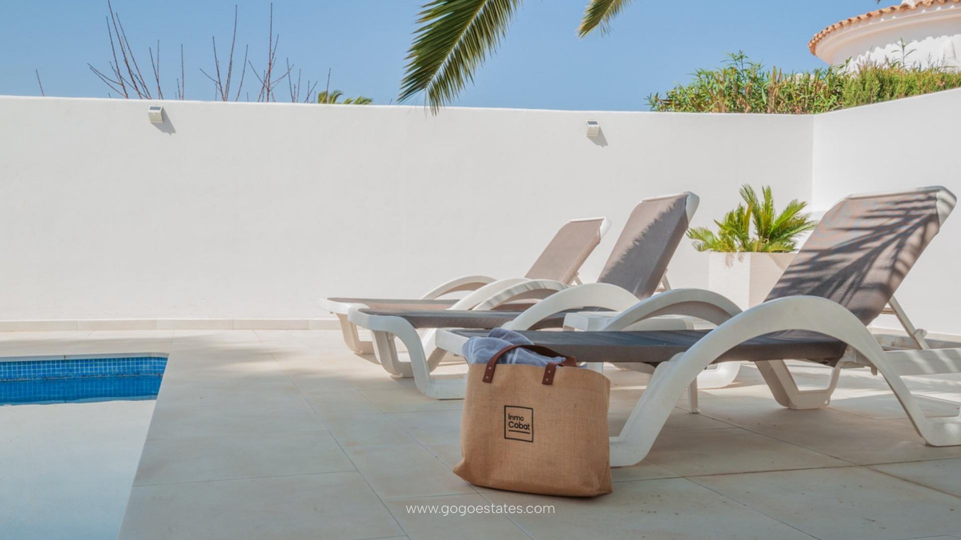 Esta moderna villa renovada se encuentra en medio de la hermosa zona de Benissa-Moraira.~La villa ofrece tres amplios apartamentos, cada uno con dos dormitorios y una terraza privada. Estos espacios de vida modernos están completamente equipados con cocinas, acogedores salones con chimenea y elegantes baños.~~Todos los apartamentos están equipados con aire acondicionado y estacionamiento seguro con un cómodo estacionamiento cubierto. Disfrute del estilo de vida al aire libre con dos piscinas y una zona de barbacoa integrada, perfecta para entretener a los invitados.~~Rodeada de un jardín bellamente paisajístico, lleno de palmeras, limoneros y diversas plantas, esta encantadora propiedad ofrece un refugio sereno para posibles compradores.