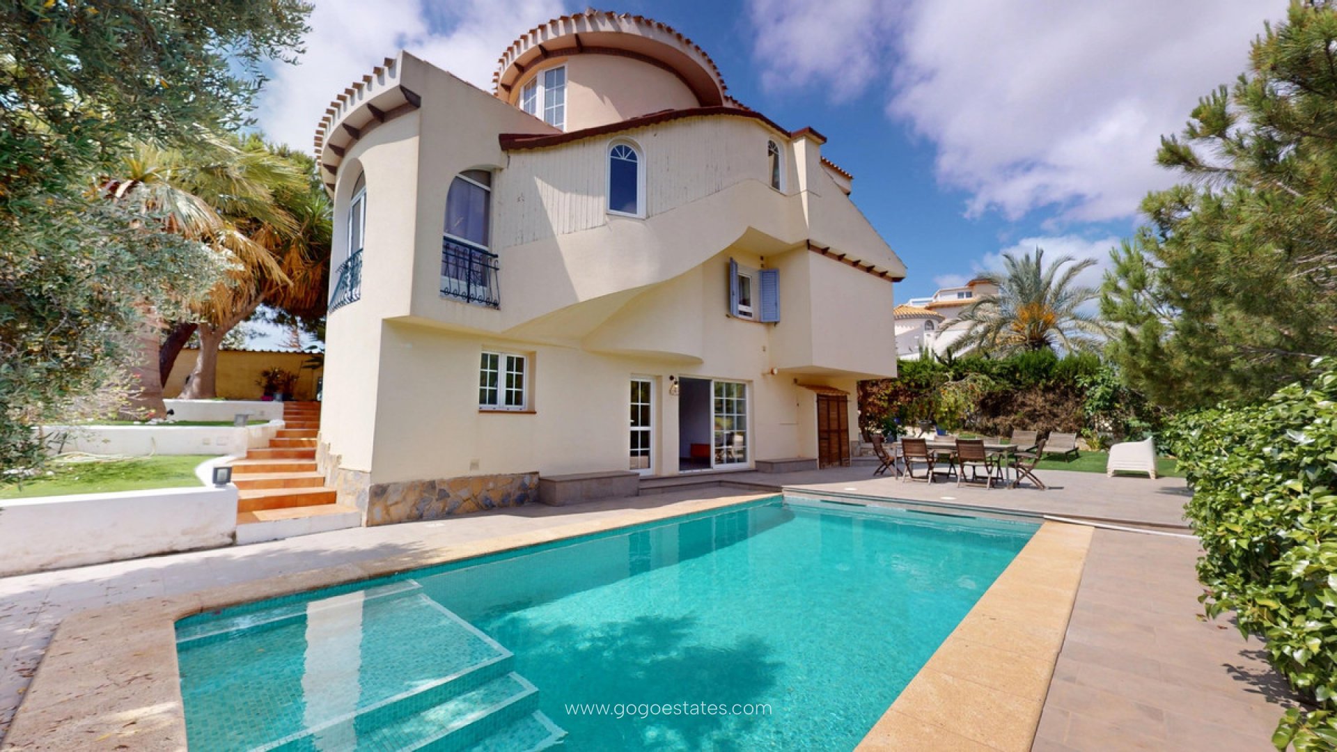 Esta espaciosa villa, lista para entrar a vivir en Orihuela Costa, ofrece todo lo necesario para una vida cómoda en la Costa Blanca. La propiedad cuenta con cinco amplios dormitorios y tres baños completos, incluyendo un lujoso baño con jacuzzi. Distribuida en varias plantas, la villa ofrece amplios y luminosos espacios de estar, una cocina totalmente equipada y varias zonas de estar. En el exterior, encontrará una gran piscina privada, varias terrazas y un jardín bien cuidado con amplio espacio para relajarse y disfrutar del clima mediterráneo. La casa está equipada con aire acondicionado y calefacción central para mayor comodidad durante todo el año. Ubicada a poca distancia de tiendas, restaurantes, campos de golf y la costa, esta villa destaca en una de las zonas más codiciadas del sur de España.