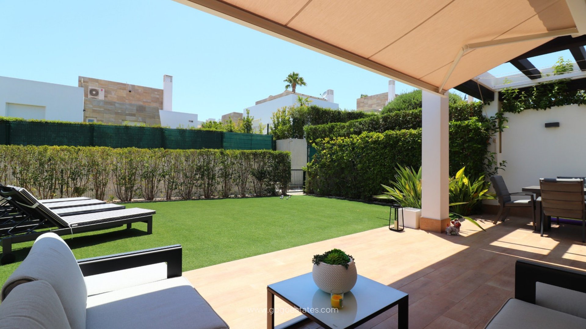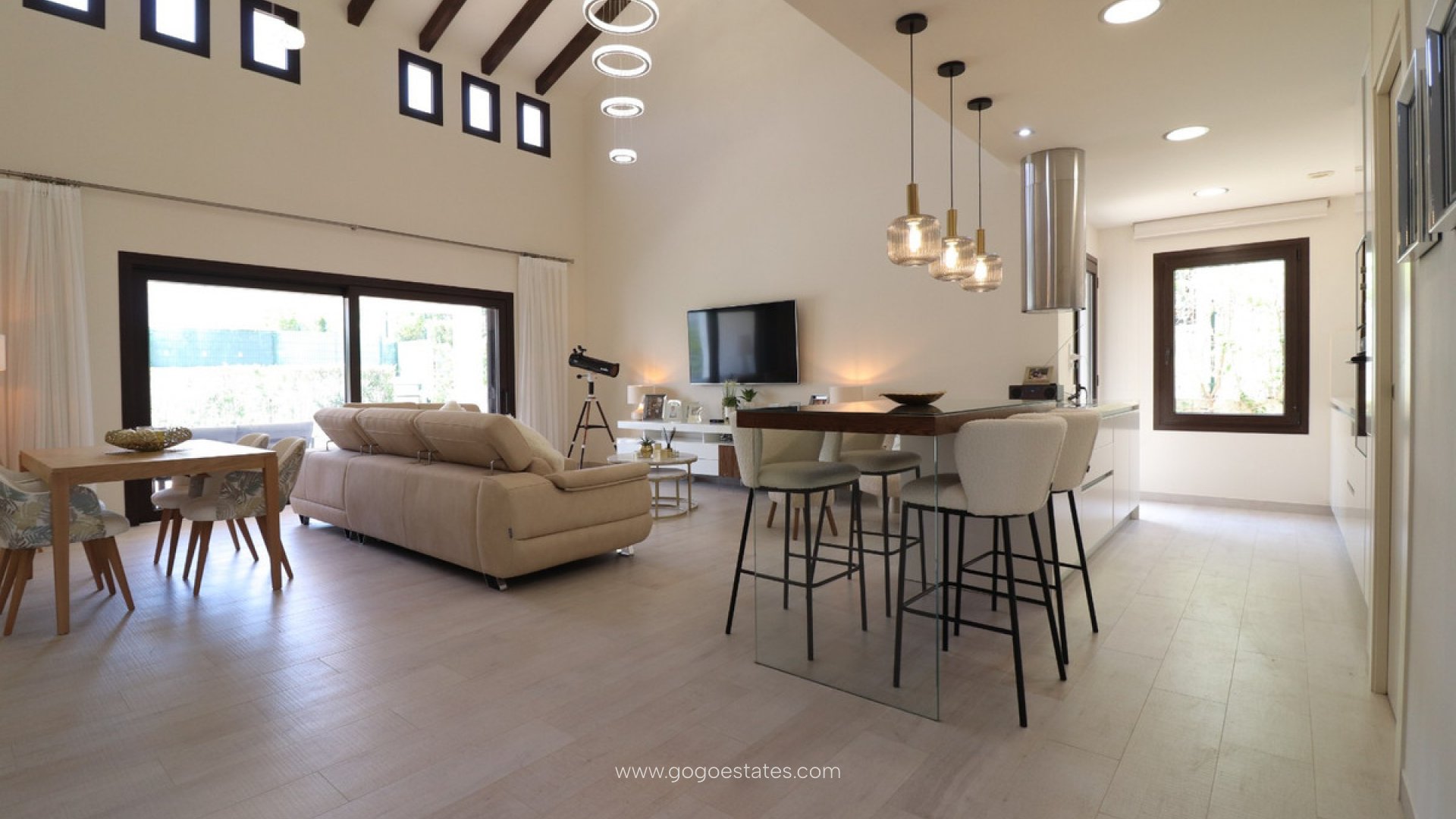 Esta impresionante villa independiente de tres dormitorios con orientación sur, ubicada en el resort de golf La Finca de 5 estrellas, se encuentra a solo un par de minutos en coche de una gran variedad de bares, restaurantes y tiendas, y a solo 5 minutos del encantador pueblo de Algorfa. Los populares pueblos de Almoradí, Quesada y Benijófar están a unos 10 minutos, mientras que las impresionantes playas de la Costa Blanca Sur están a solo 20 minutos en coche. Construida en 2017, esta impresionante villa de 127 m² presume de un hermoso diseño contemporáneo y acabados de alta calidad. El salón, de planta abierta, es luminoso y espacioso, con un techo abovedado con vigas en el salón y grandes puertas correderas acristaladas que inundan el espacio de luz natural. El comedor da paso a una elegante y moderna cocina equipada con barra americana y lavadero independiente. Hay tres dormitorios dobles, todos con armarios empotrados, incluyendo un dormitorio principal con acceso a una terraza privada y baño en suite. Un elegante baño familiar completa el interior. Ubicada en una amplia parcela de 448 m² de fácil mantenimiento, la villa cuenta con una terraza parcialmente cubierta, césped artificial, aparcamiento privado y una cochera. Además, cuenta con aire acondicionado, sistema de riego y acceso a dos hermosas piscinas comunitarias. Una vivienda excepcional en una de las zonas más codiciadas de la Costa Blanca Sur.