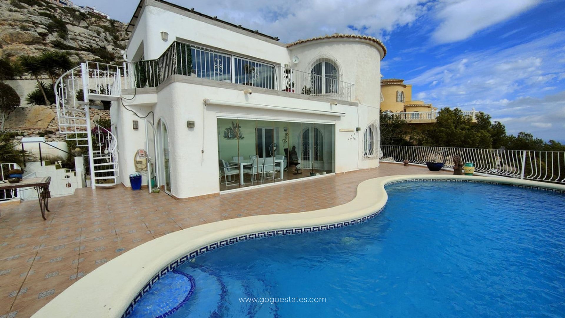 Exclusiva Villa Independiente en Cumbre del Sol, BenitachellDescubre esta espectacular villa, única en su estilo, situada en la privilegiada zona de Cumbre del Sol, Benitachell. Esta propiedad se distingue por sus incomparables vistas panorámicas al mar, un escenario de ensueño que se combina perfectamente con el entorno natural que la rodea.La villa, diseñada en dos plantas, cuenta con 3 amplios dormitorios y 3 baños completos, con una distribución pensada para aprovechar al máximo la luminosidad natural y las impresionantes vistas desde casi todas las habitaciones y el salón. Su diseño arquitectónico integra grandes ventanales que enmarcan el horizonte marino, creando un ambiente de tranquilidad y lujo.En el exterior, la villa presume de una espectacular piscina de 10x5 metros, situada justo frente a la casa y estratégicamente orientada para que el agua parezca fundirse con el horizonte del mar. Este espacio, acompañado de una terraza amplia, es ideal para relajarse y disfrutar del clima mediterráneo.La parcela de 1,163 m² ofrece un jardín bellamente decorado, con una cuidadosa selección de plantas y árboles frutales que aportan color y frescura. Además, la propiedad cuenta con un salón acogedor con chimenea, perfecto para disfrutar de noches más frescas en un ambiente cálido y elegante.Ubicada a pocos minutos de la Cala del Moraig, la autovía y servicios esenciales, esta villa combina privacidad y tranquilidad con una excelente accesibilidad.Si buscas una propiedad exclusiva donde el lujo y la naturaleza se unan, esta villa es una oportunidad única. ¡Solicita una visita y déjate cautivar por su magia!