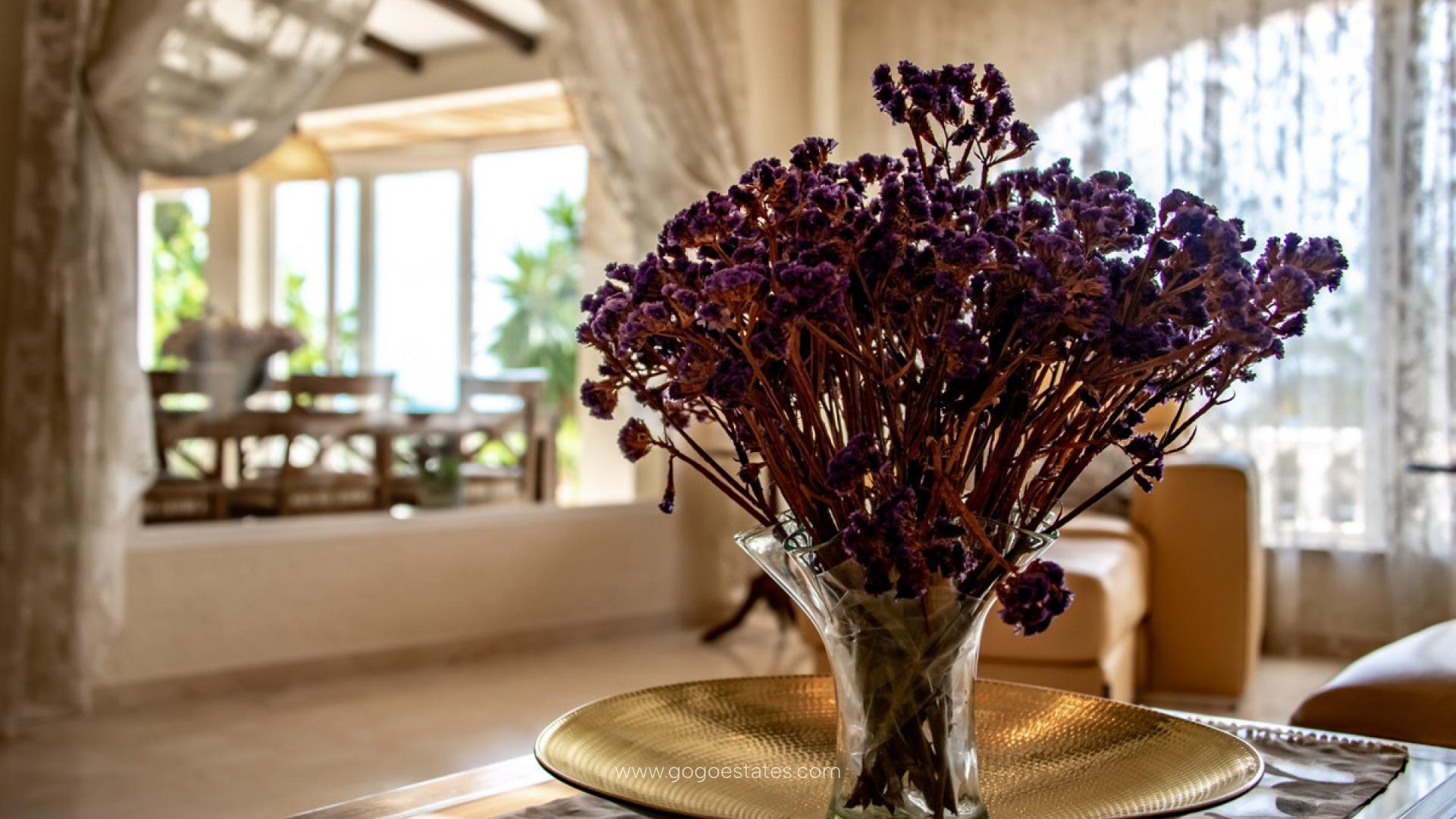 SE VENDE SIN MUEBLESSe vende una magnífica villa en la prestigiosa urbanización Canuta de Ifach, en Calpe. Su ubicación estratégica, a tan solo 63 km de Alicante, a una hora en coche del aeropuerto de Elche y a una hora y media de Valencia, convierte esta villa en una opción ideal tanto para una vida cómoda como para unas vacaciones inolvidables. La villa, construida en la cima de una terraza con impresionantes vistas al valle, está distribuida en tres niveles. En el nivel superior se encuentra la vivienda principal, en el nivel intermedio una elegante piscina, y en el nivel inferior, un pintoresco jardín con zona de barbacoa, comedor de verano, estanque y parque infantil. La casa principal consta de dos plantas. En la planta baja hay un amplio salón con chimenea, una cocina totalmente equipada y tres dormitorios, cada uno con su baño en suite y vestidor. En la planta superior se encuentra un apartamento independiente con salón, chimenea, dormitorio con vistas al mar y baño privado. Además, la propiedad incluye una acogedora casa de huéspedes con cocina, dormitorio y baño, ideal para amigos o familiares. También cuenta con un garaje cerrado y aparcamiento para dos coches. Esta villa ofrece todo lo necesario para una vida cómoda: espacios amplios y luminosos, sistemas modernos de calefacción y aire acondicionado, así como privacidad y confort. ¡Contáctenos para obtener más información o para organizar una visita!