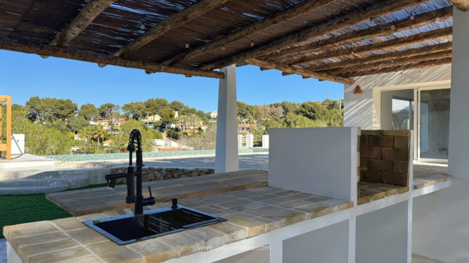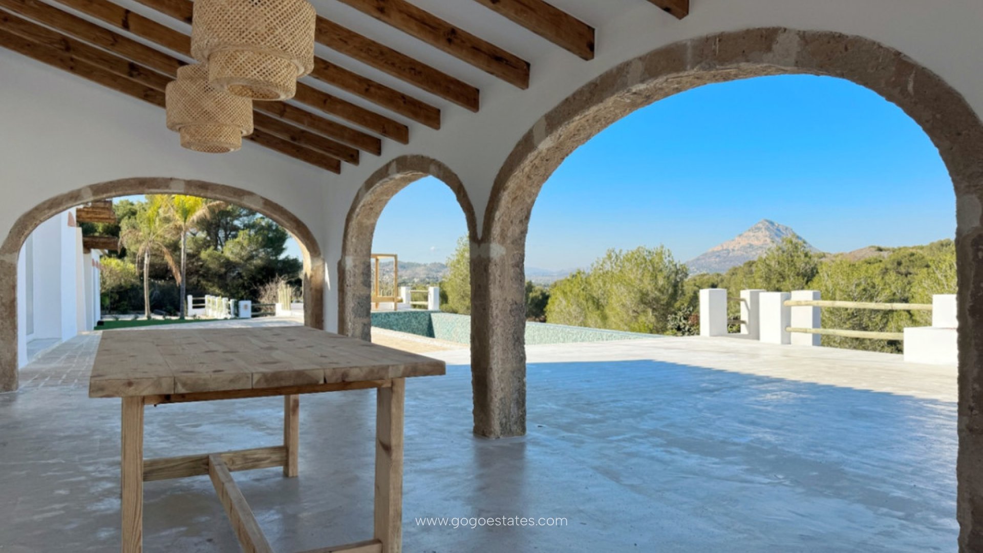 villa en estilo Ibiza en proceso de renovación, ubicada a pocos pasos de la playa del Arenal en Jávea. Esta propiedad destaca por su espectacular piscina infinity de 12x4,5 metros, ofreciendo vistas abiertas hacia el Montgó y el entorno natural. Con una parcela de 3,000 m², la casa principal cuenta con cuatro dormitorios en suite y un aseo de invitados. Además, dispone de una casita de invitados independiente, completa con un dormitorio, salón y cocina. Una joya para quienes buscan lujo y proximidad al mar en un entorno mediterráneo.