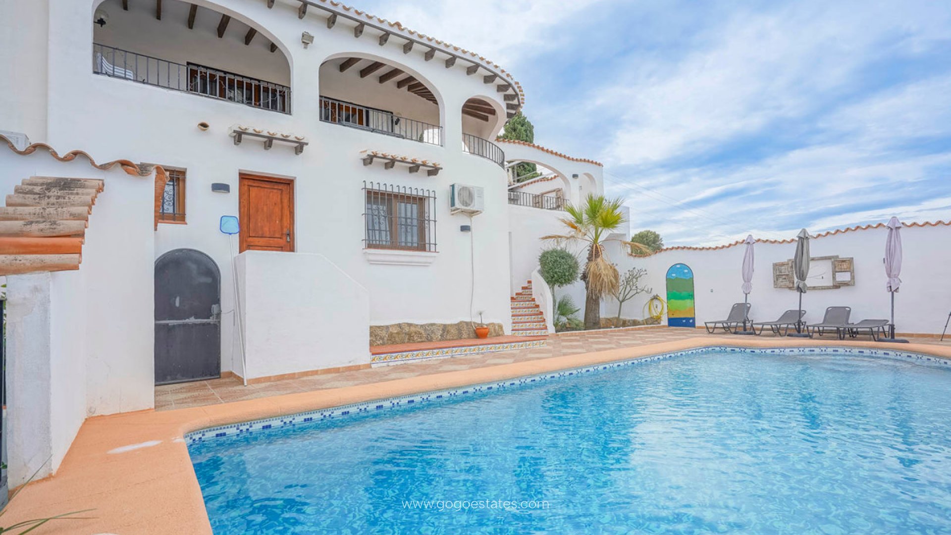 Esta gran villa tradicional española se encuentra en Monte Pego y ofrece impresionantes vistas de 180º sin obstáculos. Las vistas se extienden desde a Pego a través de la reserva natural «Marjal de Pego» y campos de arroz a las montañas al oeste y hasta la costa, con las ciudades costeras de Oliva al noroeste y Denia al este. La villa consta de dos plantas y tiene una casa de invitados independiente conectada a la casa principal. A través de un camino de entrada muy amplio de hasta 280 m2, rodeado de plantas y árboles, se llega a la villa y al garaje. Tanto la villa como el garaje están un escalón más elevados y el camino de entrada tiene cuatro desagües, por lo que nunca tendrá agua en su casa en caso de fuertes lluvias. Gracias al camino de entrada elevado, tiene el lujo de aparcar su coche justo delante de la puerta y entrar en su casa con un solo escalón. Una excepción en Monte Pego, donde a la mayoría de las casas sólo se puede acceder por escaleras. Usted entra en la propiedad en el primer piso donde se encuentra la casa principal. Esta consta de un salón con chimenea, un comedor con una mesa para 8 personas y una gran cocina americana renovada con nevera, lavavajillas, cocina y horno nuevos. También hay dos dormitorios dobles, un baño renovado y un aseo de invitados renovado. En el exterior hay una gran terraza cubierta de unos 20 m2 y un patio con barbacoa y cocina exterior con agua caliente y fría. También se ha instalado un toldo para dar sombra. Una escalera exterior conduce a la zona de la piscina, que es completamente privada y no tiene vistas a ninguna casa. La piscina de 4 x 8 m está rodeada por una gran terraza con espacio para varias tumbonas y una ducha exterior con agua caliente. También se puede disfrutar de unas vistas únicas desde la piscina. En esta planta hay otros dos dormitorios dobles, un cuarto de baño y una habitación extra. (A esta planta sólo se puede acceder desde el exterior). También hay un trastero de 18 m2 para el equipamiento de la piscina y el jardín. Adyacente está la terraza de la casa de invitados con una segunda ducha exterior también caliente/fría. La casa de invitados está conectada a la casa principal por un pasillo y consta de cocina y salón en la primera planta y un dormitorio doble, un baño muy espacioso diseñado por Luigi Colani y un aseo de invitados en la planta baja. El cuarto de baño dispone de calefacción eléctrica por suelo radiante. Existe la posibilidad de convertir el garaje de casi 30 m2 de la primera planta en una sala de estar, ampliando así la casa de invitados. La casa de invitados tiene una entrada privada además de la entrada por la casa principal. Todos los dormitorios y el salón tienen calefacción. Además, en los últimos años se han llevado a cabo varias reformas en la villa. Por ejemplo, toda la villa tiene doble acristalamiento y todas las ventanas y puertas se han renovado con marcos de ventanas de plástico con diseño de madera, se han instalado mosquiteras en todos los dormitorios y se ha colocado suelo nuevo tanto arriba como abajo, se ha instalado aire acondicionado en todos los dormitorios, salón y cocina y se ha renovado la instalación eléctrica. En el exterior, se han colocado casi 220 m2 de baldosas nuevas, incluyendo la terraza cubierta, el patio y la terraza de la piscina. La renovación ha mantenido el estilo castellano, que hace que la villa sea única. La villa está rodeada por un jardín de fácil mantenimiento con riego automático y tiene otra pequeña terraza orientada al sur. Debajo de la villa hay un sótano iluminado que da acceso a todas las tuberías que pasan por debajo de la casa. Todas las puertas y ventanas tienen rejas. Incluido en el precio están todos los muebles, incluyendo ropa de cama, vajilla, etc. Las dos parcelas parcialmente visibles a los pies de la casa están designadas «zona verde», lo que significa que no se permite construir en ellas. Un chalet de mucha calidad a buen precio con unas vistas impresionantes. ¡No lo dude más y solicite su visita! Planos del chalet a petición. Monte Pego es una urbanización con vistas únicas, rodeada de montañas que proporcionan un microclima. El acogedor pueblo de Pego está a 10 minutos en coche, pero también hay otros pueblos españoles cerca. La costa de Els Poblets está a unos 7 km y consiste en una extensa playa de arena con espacio para todos. A la turística ciudad costera de Denia se llega en 20 minutos. Monte Pego tiene una ubicación muy céntrica en relación con los aeropuertos cercanos de Valencia y Alicante. Para los amantes del deporte, hay una reserva natural justo enfrente de la urbanización con rutas de senderismo y ciclismo. También hay dos hermosos campos de golf a poca distancia, La Sella Golf y Oliva Nova Golf.