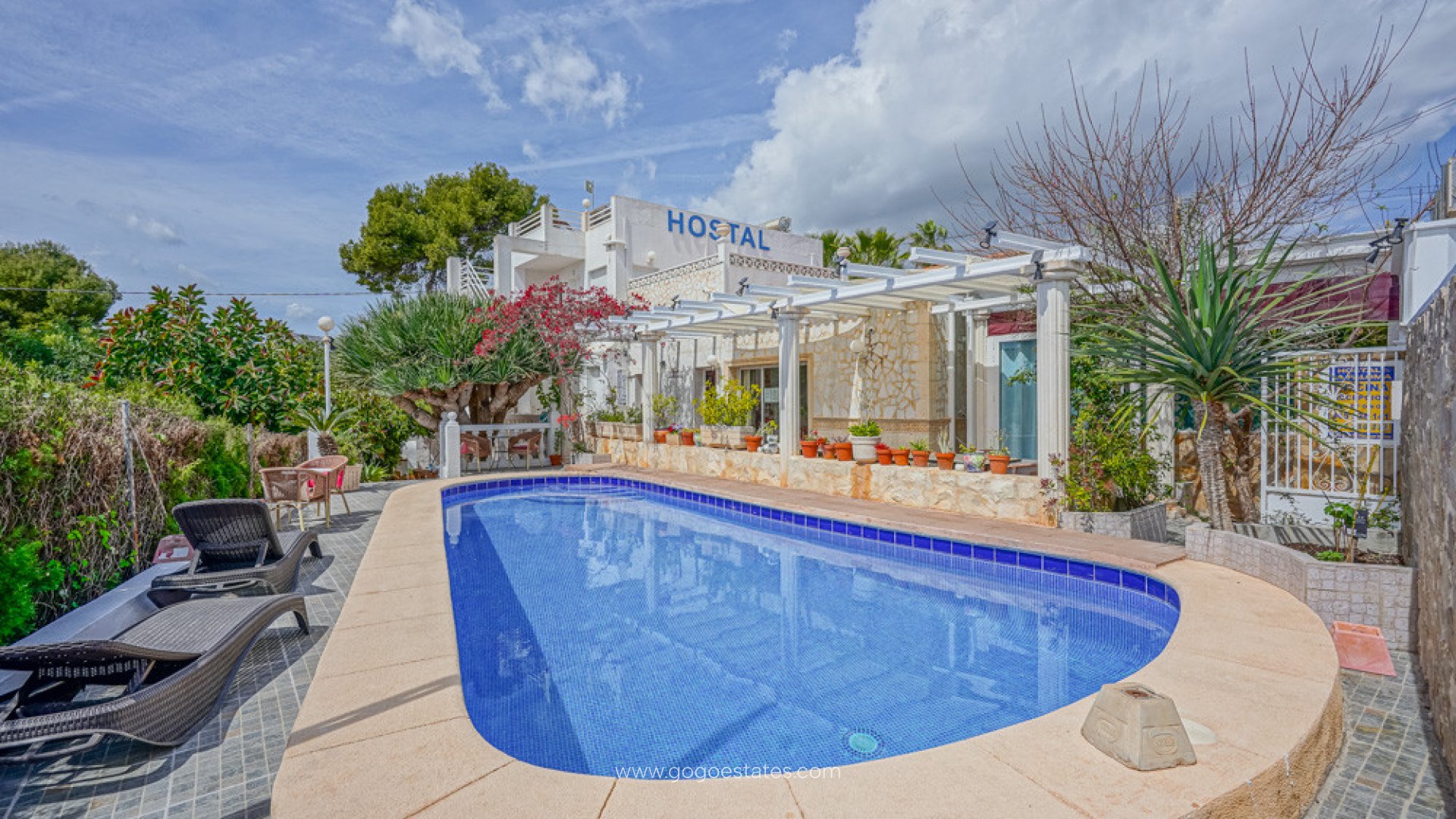 Este bonito hotel está situado cerca de la playa de Calpe. Un paseo de 15 minutos te llevará al paseo marítimo de Calpe, donde encontrarás muchos restaurantes, bares y tiendas. El hotel sigue actualmente en funcionamiento. Hay una piscina con zona de tumbonas y terraza adyacente donde un toldo proporciona sombra. También hay un bar con zona de comedor y cocina profesional, además de una segunda zona de comedor. También hay una zona de recepción, una lavandería y una zona de barbacoa. Además, hay 15 dormitorios en total. 9 habitaciones dobles, 3 habitaciones triples y 3 dormitorios donde hay 2 habitaciones dobles cada uno. Todas las habitaciones tienen baño privado, TV, aire acondicionado, nevera y Wi-Fi. Varios dormitorios también tienen terraza privada. El hotel también está cerca de una popular ruta de senderismo costero que te lleva por varias calas idílicas.