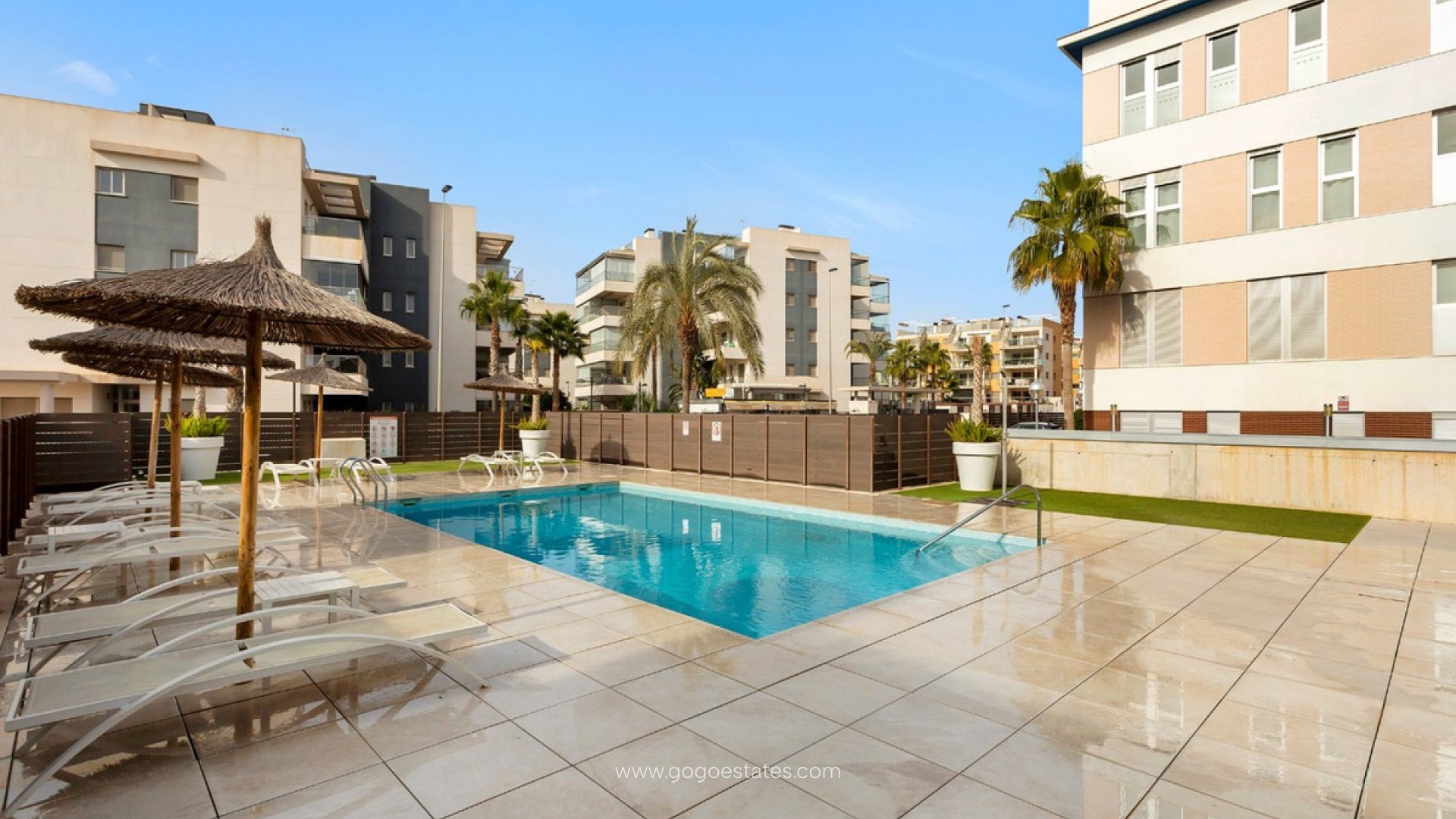 Este lujoso y elegante apartamento, moderno y completamente llave en mano con licencia turística en Villamartín, cuenta con 3 amplios dormitorios y 2 modernos baños (uno de ellos en suite). La sala de estar ofrece acceso directo a una gran terraza y también otro balcón. La cocina es abierta y muy espaciosa también. Este encantador apartamento con orientación sur tiene un encantador diseño moderno y es luminoso durante todo el día. Hay también un solárium privado, una plaza de aparcamiento subterráneo y trastero que están incluidos en el precio. Junto a este encantador y tranquilo edificio residencial se puede disfrutar de la hermosa piscina comunitaria. Hay una panadería, un supermercado y bares a 400 metros. Villamartín tiene un hermoso campo de golf de 18 hoyos y la famosa Plaza de Villamartín que alberga una gran cantidad de restaurantes y bares. Una serie de tiendas, supermercados y el centro comercial al aire libre La Zenia están a sólo unos minutos. Así se encuentra verdaderamente todo lo que necesita muy cerca. Las ciudades dinámicas y las hermosas playas de Torrevieja y Orihuela Costa están a tiros de piedra. O si prefiere un pueblo típico español, puede visitar Orihuela, que está a sólo 20 km. Además, hay conexiones fáciles con los aeropuertos de Alicante y Murcia, se tarda respectivamente sólo 40 o 50 minutos en coche. No pierda esta oportunidad, este apartamento tiene todo lo necesario para una casa de vacaciones, una residencia de invierno o una inversión en una casa cerca del mar.