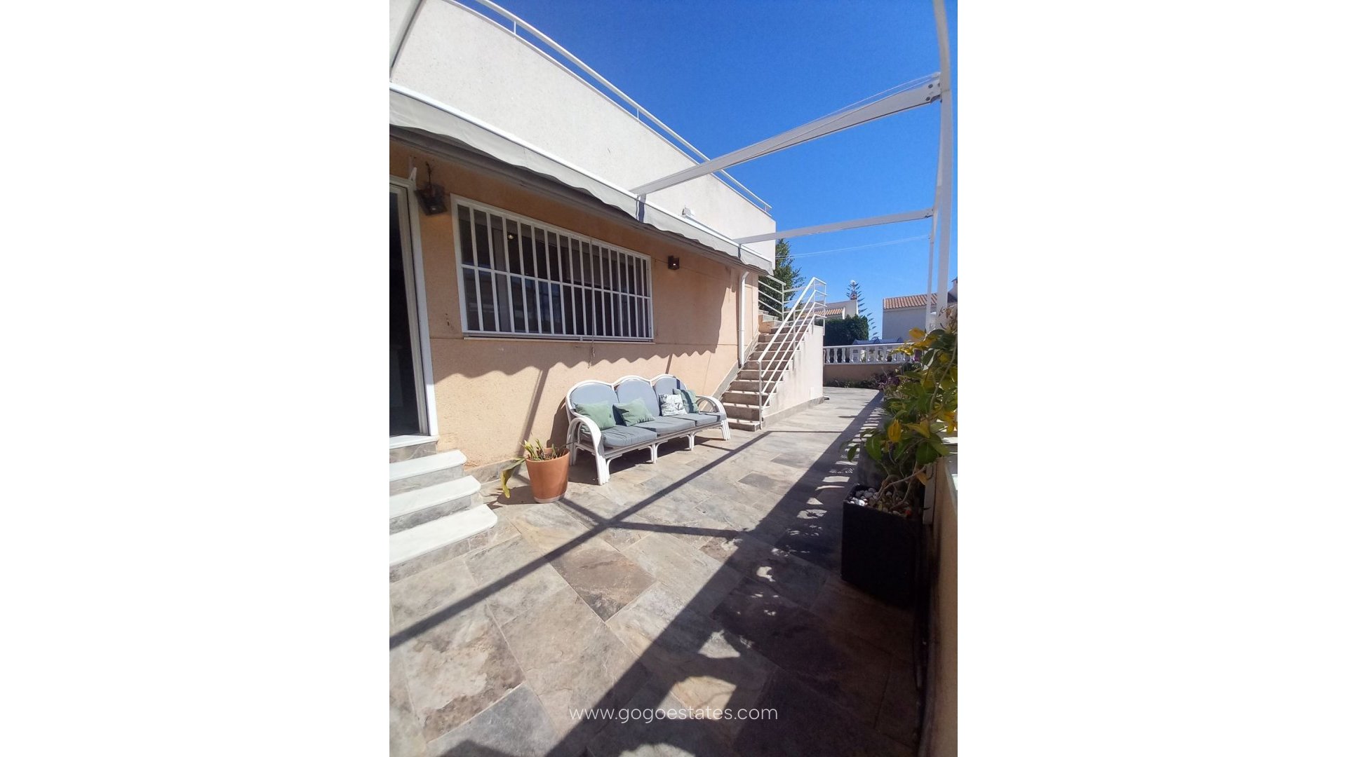 Os presentamos este Bungalow en Los Altos con 3 dormitorios, 2 baños y piscina comunitaria. A 15 minutos en coche de la playa de Punta Prima y 5 minutos del centro comercial Zenia BOULEVARD. El bungalow dispone de un jardín pavimentado y soleado, equipado con un toldo ideal para relajarse al aire libre. La casa principal ha sido completamente reformada y dispone de una moderna cocina equipada, abierta al salón. El baño también ha sido reformado y el dormitorio principal dispone de armario empotrado. Desde el exterior, una escalera da acceso a la planta superior, donde se encuentran dos dormitorios adicionales, un aseo y una amplia terraza, perfecta para disfrutar de las vistas y del clima. Los servicios están muy cerca de la casa. ???? Características ♦️Superficie 70 m2 ♦️ Habitaciones 3 ♦️ Baños 2 ♦️ Terraza de 45 m2 ♦️ Terraza solárium de 18 m2 ♦️ Cocina americana ♦️ Amueblado ♦️ Orientación sureste ♦️ Liquidación ♦️ Piscina comunitaria ♦️Se vende amueblado