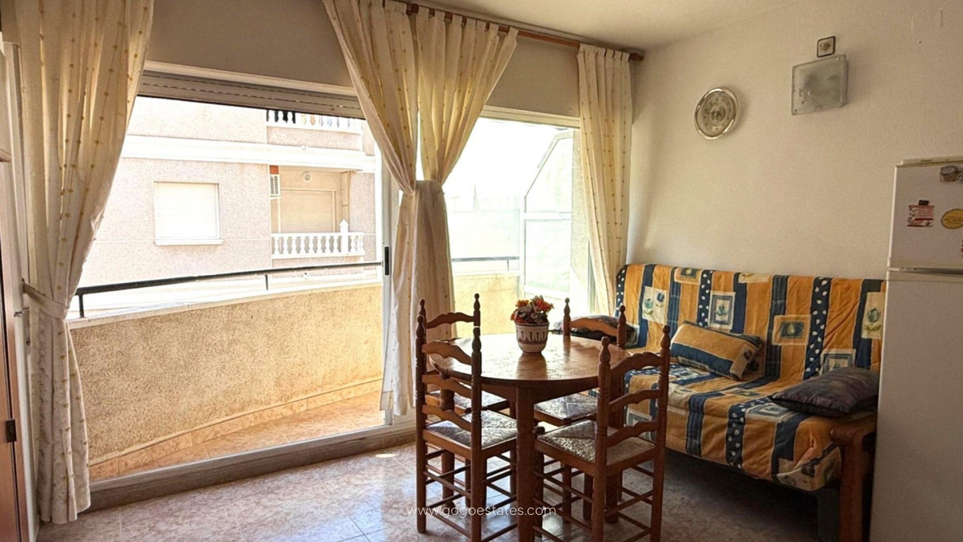 Acogedor apartamento de 1 habitación con terraza y piscina en Torrevieja Este acogedor apartamento de 1 dormitorio con armario empotrado ofrece un espacio funcional y lleno de luz, gracias a su orientación sur, que garantiza sol durante todo el día. Cuenta con un baño completo, una agradable terraza ideal para disfrutar del buen clima mediterráneo, y un luminoso salón que invita al relax. Como valor añadido, incluye un trastero privado de 9 m², perfecto para almacenar bicicletas, material de playa o lo que necesites. El edificio dispone además de una piscina comunitaria para refrescarte en los días más calurosos. Aunque la vivienda necesita algunas reformas, representa una magnífica ocasión para personalizarla a tu estilo y sacar un alto rendimiento como alquiler vacacional o segunda residencia. UBICACIÓN: Torrevieja se encuentra en la provincia de Alicante (Costa Blanca). Es famosa por su clima mediterráneo y su costa. No podemos olvidar sus paseos marítimos donde podemos encontrar algunos restaurantes a lo largo de las playas de arena fina. Además, cuenta con excelentes playas como la Playa de los Náufragos, la Playa de los Locos y la Playa de la Mata. Por lo tanto, se considera una localidad turística destacable donde el medio ambiente ocupa un lugar importante como reclamo turístico. Además, podemos encontrar numerosos centros comerciales (Habaneras, La Zenia Boulevard), campos de golf, centros deportivos, hospitales (como el Hospital Universitario de Torrevieja) y aeropuertos como el Aeropuerto de Alicante (a 35 km) y el Aeropuerto Internacional de la Región de Murcia (a 43 km). DISTANCIA AL MAR: 400m COMUNIDAD: 588 € IBI: 140 € Si tiene alguna pregunta, no dude en ponerse en contacto con nosotros!