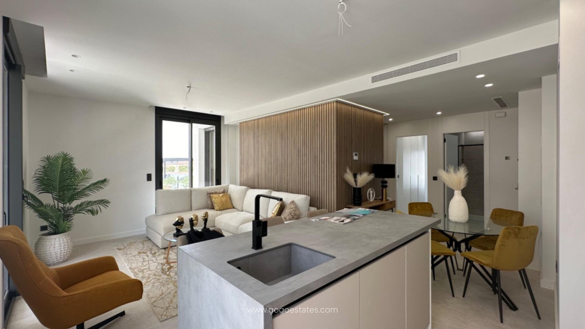 Modernos apartamentos en Santa Rosalía en la Costa Cálida. El nuevo complejo residencial consta de apartamentos de 3 dormitorios y 2 baños y de 2 dormitorios y 2 baños, ubicados alrededor de un lago artificial de aguas cristalinas tipo playa y numerosas comodidades. También hay áreas de recreación especiales para yoga o meditación, un bar en la playa, senderos para correr y andar en bicicleta, un club de playa con restaurante y gimnasio y un campo de minigolf. El complejo está completamente cerrado, con entrada vigilada y sistema de videovigilancia.