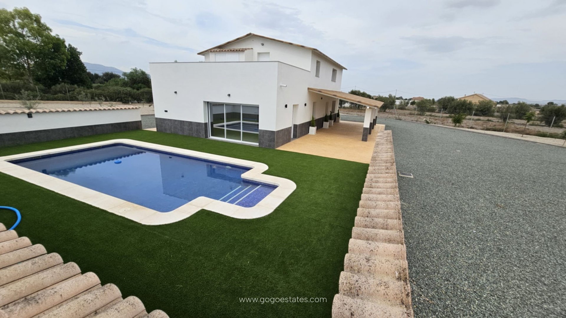 Esta residencia ofrece una distribución bien pensada, que incluye una cocina, una espaciosa zona de estar-comedor, cinco dormitorios completamente amueblados y cinco baños bien equipados. Al entrar, encontrarás un acogedor recibidor, un pasillo y una escalera que conduce a la planta superior. La casa también incluye una sala de lavandería para tu lavadora, una terraza de aproximadamente 40 metros cuadrados y un generoso porche de 49 metros cuadrados. Situada en una parcela de 4,500 metros cuadrados, la propiedad está completamente vallada y cuenta con un jardín meticulosamente cuidado y una refrescante piscina. Disfruta de acceso directo a una carretera asfaltada y de una ubicación conveniente, a solo 5 minutos de la Estación de Puerto Lumbreras y a 7 minutos de Lorca. Características interiores: La casa está diseñada con una excelente aislación en sus paredes, techos y divisiones interiores, utilizando lana de roca de 5 cm.Las paredes interiores están construidas con una estructura metálica de 9 cm y pladur.Ventanas eficientes en energía, de rotura de puente térmico en color blanco, mejoran la propiedad.En todo el interior, encontrarás atractivas puertas de roble en color madera clara.El interior está acabado en pintura blanca lisa. Calefacción y Refrigeración: Disfruta de la comodidad del suelo radiante con tecnología aerotérmica, con una capa de aislamiento de 4 cm, completamente equipado con maquinaria.La propiedad también está equipada con sistemas de aire acondicionado por conductos que funcionan a la perfección. Características Exteriores: La zona del porche está bellamente terminada con hormigón impreso en un cálido tono beige.La fachada de la casa está adornada con un elegante zócalo de azulejos de porcelana de 0.60x0.90.La fachada exterior está revestida con un acabado de capa única en color blanco aplicado con textura suave de rodillo. Piscina y Alrededores: La propiedad cuenta con una piscina de 4x8 metros construida con muros de hormigón proyectado de 20 cm y adornada con azulejos de gresite de 2.5x2.5. La piscina también incluye un sistema de filtración.Alrededor de la piscina, encontrarás un tramo de 2 metros de césped artificial.Un muro de 1.70 metros de altura rodea la zona de la piscina.Toda la parcela está vallada de forma segura y cuenta con árboles frutales, un sistema de riego por goteo y una mezcla de grava en color gris y blanco. Esta propiedad ofrece una combinación de comodidad moderna, estilo y comodidades al aire libre, lo que la convierte en un lugar ideal para llamar hogar.