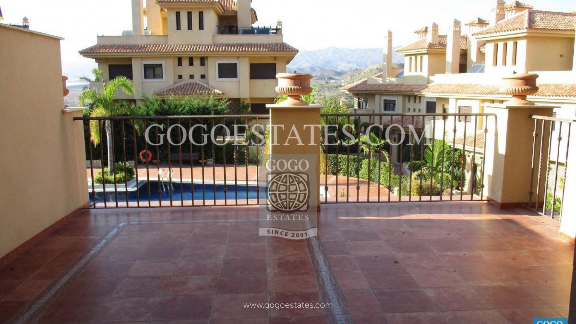 Apartamento de lujo en Jardines de la Almenara – Águilas, Costa Cálida Descubra esta excepcional vivienda de lujo con dos dormitorios, ubicada en el exclusivo complejo Jardines de la Almenara, a solo unos minutos de la playa y del encantador pueblo de Águilas, en la hermosa Costa Cálida. Situado dentro de una comunidad privada cerrada con seguridad las 24 horas, esta propiedad ofrece características premium, incluyendo una piscina comunitaria, jardines paisajísticos, sistema de alarma y entrada segura. Construida con materiales de alta calidad, cuenta con persianas automatizadas y acabados modernos en toda la propiedad. En el interior encontrará: Amplio vestíbulo de entrada Elegante sala de estar-comedor con una acogedora chimenea Cocina independiente totalmente equipada con lavadero Dos baños, uno con jacuzzi Dos dormitorios dobles con armarios empotrados Acceso directo a la terraza desde la sala de estar y el dormitorio principal, con vistas a la piscina Totalmente amueblado y listo para entrar a vivir Esta es una oportunidad única para poseer una vivienda elegante en un entorno sereno y seguro, ideal como residencia principal, casa de vacaciones o inversión. Contáctenos hoy mismo para obtener más información o para programar una visita privada.