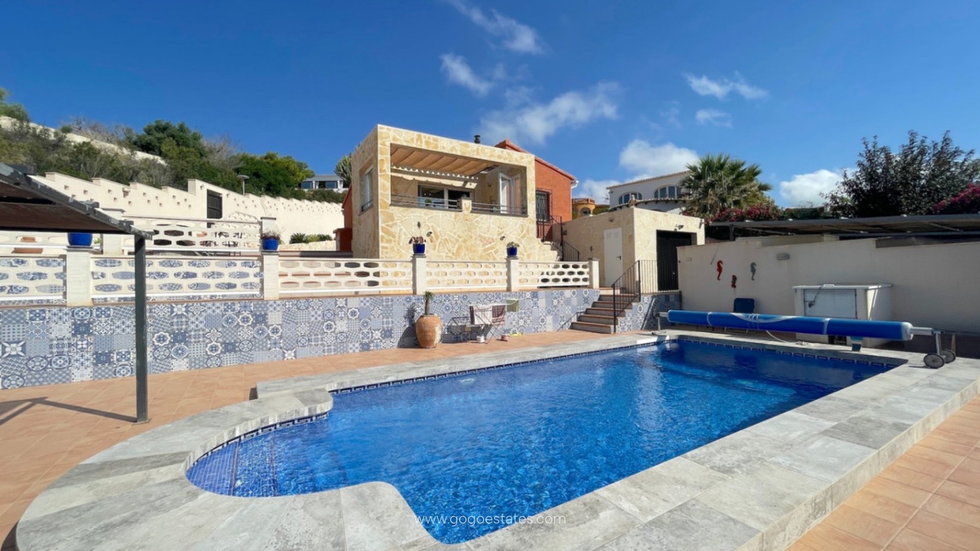 Idílica Villa Independiente con Vistas al Mar en Cumbre del Sol, Benitachell ¡Bienvenido a tu refugio soñado! Esta impresionante villa independiente, situada en una amplia y privada parcela de 737m², es tu puerta exclusiva a vistas al mar y al estilo de vida sereno que siempre has deseado. Ubicada en la prestigiosa zona de Cumbre del Sol en Benitachell, esta propiedad ofrece una combinación perfecta de confort y conveniencia. Características Clave: Vistas al Mar: ¡La elevación es clave! La ubicación ligeramente elevada de esta villa te permite disfrutar de vistas abiertas al área circundante y al resplandeciente mar Mediterráneo, haciendo que cada momento pasado aquí se sienta como unas vacaciones. Ubicación Prima: A solo un relajante paseo de 5 minutos, encontrarás una selección de comodidades esenciales que incluyen un encantador restaurante, un supermercado bien surtido y una farmacia, asegurando que todo lo que necesitas esté siempre a tu alcance. Vida al Aire Libre en Su Máxima Expresión: Disfruta del hermoso clima mediterráneo con una acogedora "naya" abierta, orientada al sureste. Equipado con un toldo ajustable para sombra en verano y lados acristalados para protección en invierno, este espacio es perfecto para disfrutar durante todo el año. Interior Acogedor: Entra y descubre una cálida y acogedora área de salón-comedor con una encantadora estufa de pellets, ideal para noches acogedoras. La cocina abierta ofrece funcionalidad y estilo, mientras que las dos cómodas habitaciones están equipadas con ventiladores de techo, y la habitación principal cuenta también con una unidad de aire acondicionado (que proporciona tanto refrigeración como calefacción) para asegurar un sueño reparador. Oasis al Aire Libre Rejuvenecedor: Sumérgete en tu propia fantástica piscina, completa con una ducha exterior: un verdadero oasis de relajación y diversión durante esos días soleados. El extenso pavimento y las áreas en terraza que rodean la propiedad hacen que el mantenimiento al aire libre sea muy fácil, proporcionando un amplio espacio para tomar el sol, comer al aire libre o simplemente disfrutar de los impresionantes alrededores. Amplio Estacionamiento: Disfruta de la comodidad de un área de estacionamiento dedicada y un garaje, que proporcionan seguridad y fácil acceso a tu villa. Ideal para Todas las Temporadas: Ya sea que busques una escapada pacífica para tus vacaciones o una encantadora residencia para estancias más largas, esta villa está diseñada para satisfacer todas tus necesidades. Su combinación de privacidad, confort y proximidad a las comodidades la convierte en una opción perfecta para aquellos que buscan abrazar el estilo de vida mediterráneo. ¡No Te Lo Pierdas! Esta cautivadora villa no es solo una casa; es un estilo de vida que te espera. Programa una visita hoy, y deja que la belleza de esta propiedad inspire tu próximo capítulo. Experimenta la vida costera en esta excepcional villa en Cumbre del Sol. ¡Tu paraíso te espera!