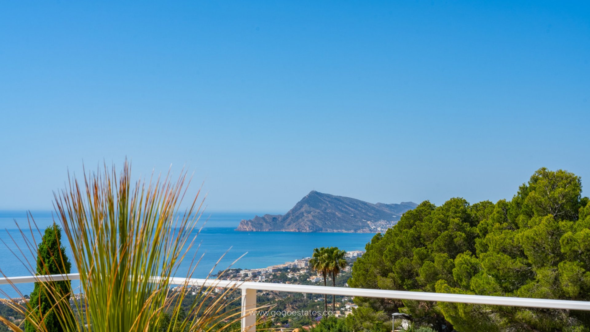 Impresionante villa de lujo de gran tamaño y elegancia con 7 dormitorios, piscina, ascensor, garaje para 5 coches, domótica, gimnasio, orientación sur y vistas. Impresionante obra arquitectónica de contundente presencia y excepcional tamaño, que se erige en la montaña de Altea como si de un castillo se tratase. Su inusual tamaño, elegante diseño moderno y las excelentes calidades con las que esta bella casa ha sido construida, son ya de por sí sorprendentes. Sus embaucadoras vistas al mar, su perfecta orientación sur, sus numerosas estancias y su atípico garaje para cinco coches, es absolutamente único. Si su extraordinario tamaño, su elegante estética y las maravillosas vistas al mar enamoran a primera vista; el interior es aún más sorprendente por sus exquisitos materiales y sus enormes espacios llenos de luz gracias a los grandes ventanales que iluminan cada rincón y tornan las increíbles vistas al mar en protagonistas indiscutibles, como si fuera la perfecta puesta en escena para disfrutar del máximo lujo a diario, sin nada que envidiar a los mejores resorts del mundo. Esta hermosa villa está situada en una de las zonas residenciales más exclusivas de la Costa del Mediterráneo por su sol todo el año, sus vistas al mar y a la montaña, su tranquilidad y su cercanía a los accesos a la autopista y el aeropuerto . Además, a muy pocos minutos en coche, está el pintoresco casco antiguo de Altea, con sus vibrantes calles llenas de terrazas, su cuidada playa, club náutico, elegantes tiendas, club de golf y numerosas opciones de ocio acuático y gastronómico para todos los gustos.