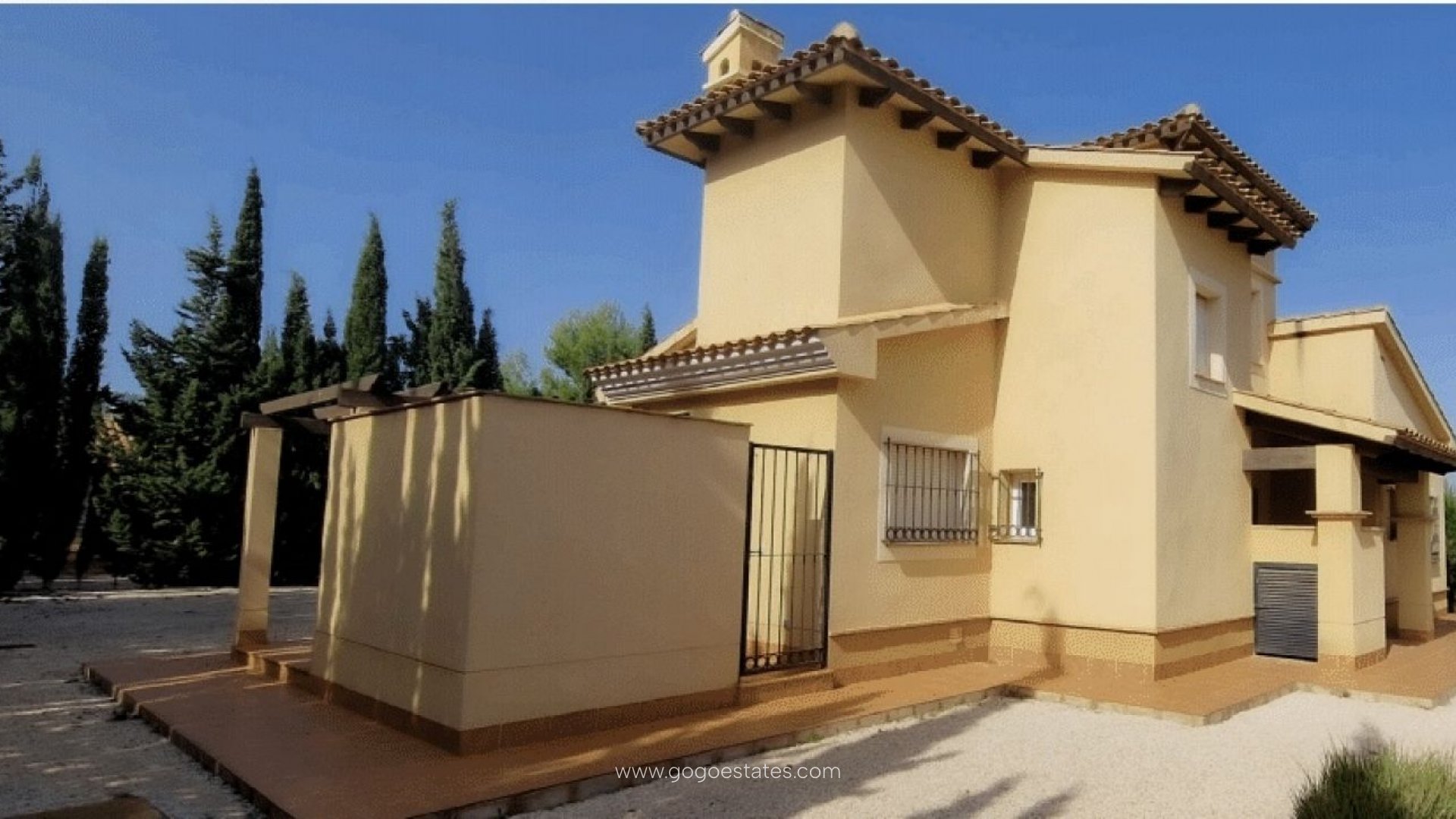 ¡Fantástico! Chalet Olivo de 3 dormitorios y 2 baños, la única vivienda distribuida en dos plantas. Cuenta con dos dormitorios y un baño en la planta baja, y un dormitorio, un baño y dos soláriums en la planta alta. Además, cuenta con el salón más grande de todas las viviendas, con un total de 30,86 m².~Los Altos de las Palas es una promoción que cuenta con puertas interiores de madera de pino panelada de estilo rústico español de 35 mm de grosor y tiradores tradicionales de hierro negro. Los frentes de los armarios empotrados también utilizan puertas batientes de madera de pino de estilo rústico, con una balda de madera para maletas y una barra para colgar ropa. Se pueden encontrar vigas de madera decorativas en los porches y salones, según el tipo de vivienda.~Los cerramientos exteriores de las fachadas de los edificios son de bloque de arcilla termosellada de 29 cm de grosor, revestidos con mortero monocapa de varios colores. Los tabiques interiores son de ladrillo hueco. Las superficies exteriores están revestidas con mortero monocapa de acabado rugoso, mientras que las interiores están revestidas con yeso laminado. Los falsos techos de baños y aseos están revestidos con placas de yeso.~Las cubiertas inclinadas de los edificios están revestidas con teja curva envejecida, con aislamiento térmico en la losa de cubierta, excepto en los porches. Las cubiertas planas están revestidas con teja curva envejecida, también con aislamiento térmico en la losa de cubierta, excepto en los porches. Las cubiertas planas y las terrazas están impermeabilizadas y revestidas con baldosas antideslizantes.~El pavimento interior de los edificios está revestido con baldosas de arcilla imitación tierra natural de 31 x 31 cm, con rodapié del mismo material. Los pavimentos exteriores, como pavimentos, porches, tendederos y solárium, están revestidos con baldosas de gres antideslizantes de 31 x 31 cm y con rodapié del mismo material. Los baños están alicatados con azulejos cerámicos hasta una altura máxima de 1,30 m y acabados con cenefa decorativa. Las bañeras y duchas están alicatadas hasta el techo, y se ha instalado una mampara de mármol entre la ducha y el inodoro. Las cocinas también están alicatadas con azulejos cerámicos hasta el techo.~La puerta de entrada de cada vivienda es de madera de pino panelada de estilo rústico, con tirador tradicional de hierro negro y cerradura de seguridad. La carpintería exterior es de perfiles de aluminio lacados en blanco, abatibles o correderos, según la distribución. Se utiliza doble acristalamiento con separación 4+6+4, mientras que se han instalado persianas enrollables en puertas y ventanas de aluminio, excepto en los baños.~Las cocinas de cada vivienda estarán equipadas con armarios, encimera de granito, electrodomésticos y lavabo. Los sanitarios blancos de porcelana vitrificada incluyen grifería monomando cromada. También se proporciona agua caliente mediante un acumulador eléctrico de 150 l. La ducha cuenta con un plato interior de ducha con acabado de gresite. Cada vivienda está equipada con instalación eléctrica con cuadro de alta protección, interruptores, tomas de luz y enchufes en todas las estancias. Se incluye preinstalación de aire acondicionado por conductos. Las tomas de teléfono se encuentran en el salón-cocina y los dormitorios de cada vivienda, de acuerdo con la normativa vigente. También se incluye portero automático.~Se incluye la infraestructura necesaria para todo tipo de señales de cable. Se ha instalado una conexión de radio/televisión terrestre en el salón-cocina y los dormitorios de cada vivienda, de acuerdo con la normativa vigente.~Se incluyen zonas de aparcamiento privado dentro de la parcela, mientras que hay plazas de aparcamiento público disponibles en las calles de la urbanización.~Los jardines privados cuentan con filtro de tierra y grava, una palmera, dos pinos, dos árboles y dos maceteros.~~¡Llámenos para visitarnos!~*Esta propiedad se vende sin amueblar.~Superficie construida: 178 m²~Precio: 295.000 €~