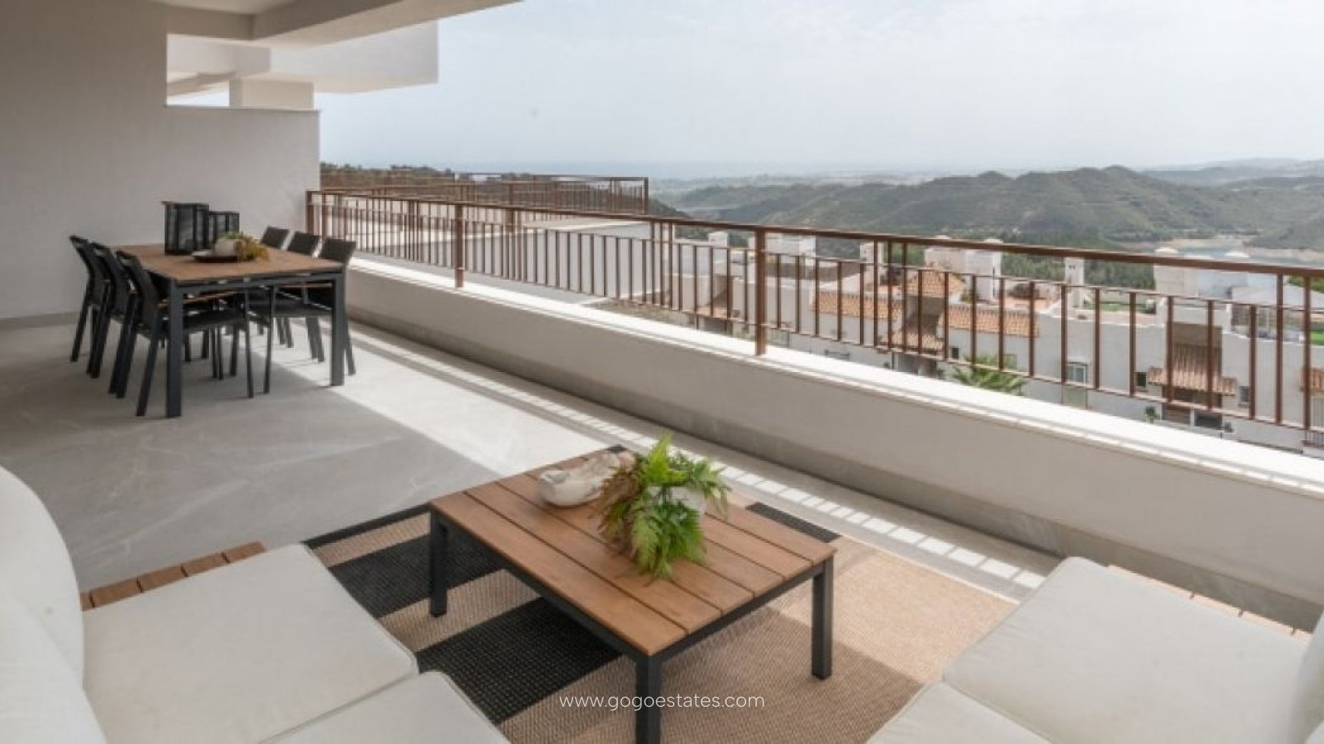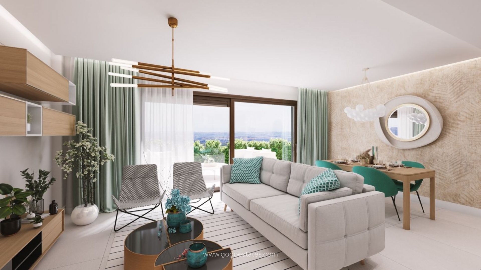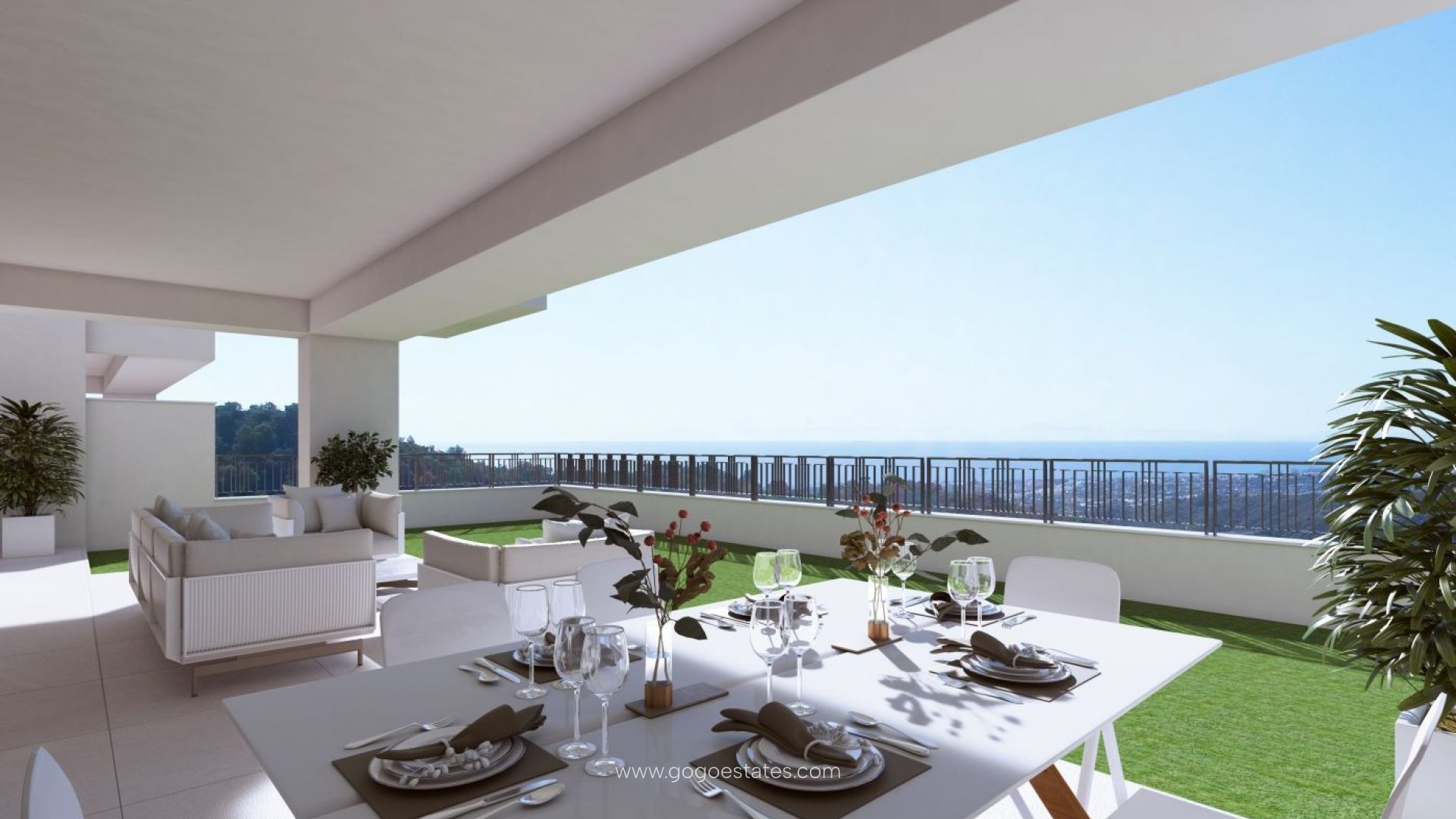 Esta exclusiva promoción residencial está compuesta por 23 viviendas pareadas diseñadas con esmero para ofrecer vistas ininterrumpidas a Gibraltar, la costa de Marruecos y el litoral de Marbella. Orientadas al sur-suroeste, cada vivienda está estratégicamente ubicada para aprovechar al máximo la luz natural y las espectaculares vistas.~~La arquitectura combina un estilo contemporáneo con toques rústicos, integrándose de forma armoniosa en el entorno natural y creando un ambiente residencial sereno y sofisticado.~~Cada vivienda cuenta con 3 amplios dormitorios, grandes terrazas, un solárium privado y acceso a jardines comunitarios ajardinados con especies autóctonas. La promoción incluye además una piscina comunitaria, ideal para relajarse y disfrutar del entorno.~~Ubicadas en una tranquila zona residencial a pocos kilómetros de la Milla de Oro de Marbella, estas modernas viviendas son perfectas tanto para vivir todo el año como para disfrutar de vacaciones y fines de semana en la Costa del Sol.~~Estas viviendas se entregan completamente equipadas y listas para entrar a vivir, con acabados de alta calidad e incluyen una plaza de garaje privada en sótano.~~Diseñadas para ofrecer confort, elegancia y exclusividad, sus interiores cuentan con materiales de primera calidad. Entre sus características destacan la carpintería exterior de alta gama, suelos cerámicos de gran formato, amplios ventanales que aprovechan al máximo la luz natural, cocinas totalmente equipadas y baños modernos con sanitarios y grifería de alta calidad. Además, disponen de un sistema de aire acondicionado por conductos instalado en toda la vivienda, con maquinaria incluida para garantizar una climatización óptima durante todo el año.~~~~