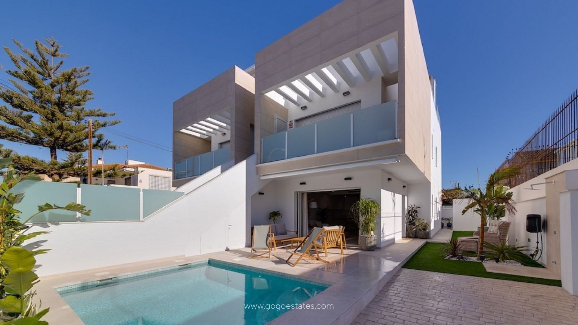 Una promoción exclusiva compuesta por solo seis apartamentos: tres en planta baja y tres en planta alta. Cada apartamento dispone de 2 dormitorios y 2 baños.~~En la planta baja: los apartamentos 1 y 2 incluyen una terraza delantera con aparcamiento y una terraza trasera, mientras que el apartamento 3 también cuenta con una hermosa piscina para disfrutar en familia.~~Los apartamentos en planta alta disponen de piscina privada en el solárium. Muros altos entre las viviendas garantizan privacidad. Como mejora opcional, el solárium puede equiparse con una pérgola y una cocina exterior con armarios, fregadero con grifo, placa de cocción, mini nevera y persiana eléctrica.~~Extras incluidos:~~Instalación completa de aire acondicionado~~Electrodomésticos de cocina Bosch~~Baños completamente terminados~~Iluminación interior y exterior~Piscina privada~Ubicación~Este proyecto único se está construyendo en el corazón de San Pedro del Pinatar, a solo minutos de la playa, bares y restaurantes. La playa está a menos de 1 km, y los restaurantes y un supermercado a solo 2 minutos a pie.~San Pedro del Pinatar es conocido por sus playas tanto en el Mar Mediterráneo como en el Mar Menor, ideales para deportes acuáticos y relajación. También es famoso por sus baños de barro con propiedades terapéuticas.~El aeropuerto de Murcia se encuentra a 30 minutos en coche, con excelentes conexiones por autopista y transporte público con las ciudades cercanas.~~