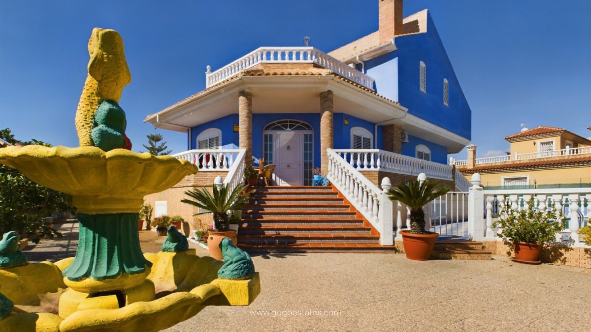 Impresionante villa independiente muy bien construida situada en Lomas del Rame - Los Alcázares. Consta de 5 dormitorios, 3 baños, piscina privada de buen tamaño, estacionamiento para varios autos y dependencias, completa con cocina de verano y amplio sótano reformado. La propiedad se vende completamente amueblada y viene con aire acondicionado frío y calor y chimenea. Descargo de responsabilidad Nos esforzamos por mantener representaciones precisas de las propiedades en recorridos virtuales, planos de planta y descripciones, sin embargo, estos están destinados solo a ser una guía y los compradores deben asegurarse mediante una inspección personal. Características Dormitorios: 5 Baños: 3 Superficie construida: 288m2 Piscina: Sí Garaje: Privado Cocina: Independiente Aire acondicionado frío y calor Cocina de verano Totalmente amueblado Armarios empotrados A 30 minutos del aeropuerto de Murcia