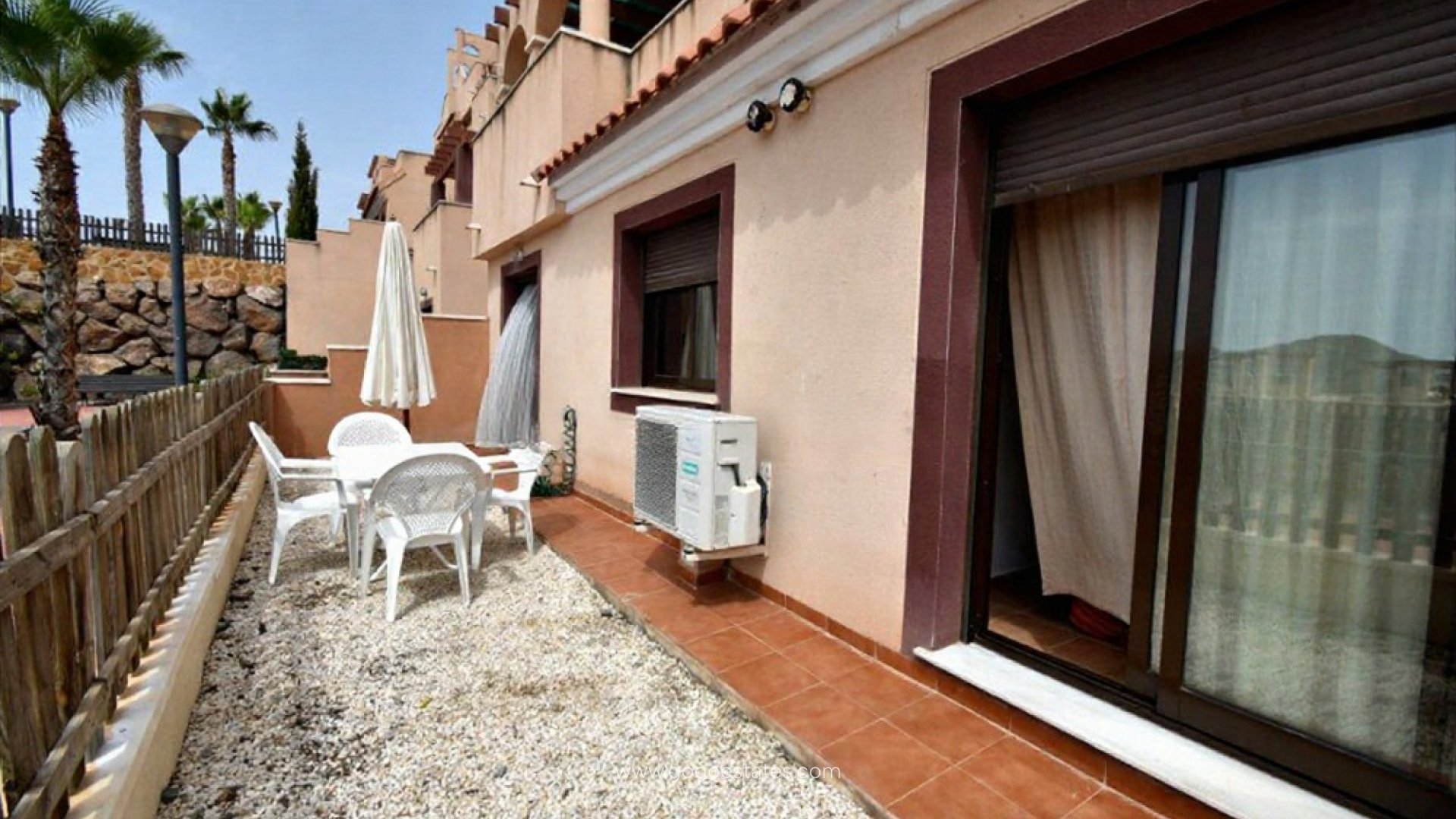 Apartamento en Planta Baja en Venta en Collados Golf en Águilas Este apartamento en planta baja ofrece acceso a una luminosa sala de estar con una cocina abierta totalmente equipada, ideal para disfrutar de la vida con familia o amigos. La propiedad cuenta con dos dormitorios dobles con armarios empotrados que proporcionan espacio y organización, y dos baños completos, uno de los cuales se encuentra en la suite principal con acceso directo a una terraza privada. Esta terraza es el lugar perfecto para relajarse, tomar el sol o compartir momentos inolvidables. La propiedad incluye un garaje y un sistema de aire acondicionado con calefacción y refrigeración, asegurando confort durante todo el año. Su ubicación es inmejorable, a solo un kilómetro de las playas y a dos kilómetros del centro comercial, donde se pueden encontrar supermercados como Mercadona, restaurantes como Burger King y El Refugio de JuanFran, un auditorio, una gasolinera, y todo tipo de servicios. Esto lo convierte en una opción perfecta para vivir todo el año, disfrutar de unas vacaciones, o invertir con alta rentabilidad. La residencia combina tranquilidad, comodidad, y un estilo de vida mediterráneo, lo que la convierte en una oportunidad única en Águilas.