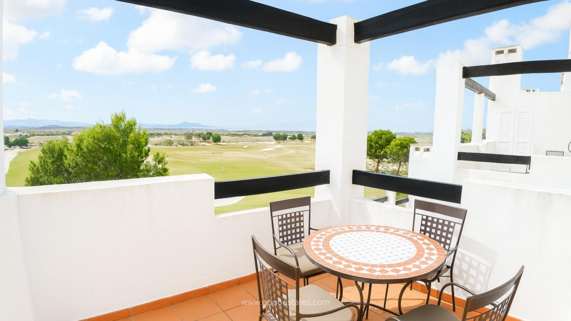 Apartamento en Primera Línea de Golf - Condado de Alhama~~Apartamento de 2 dormitorios con vistas al campo de golf~Despierte con impresionantes vistas al campo de golf, sol infinito y atardeceres inolvidables desde este precioso ático de dos dormitorios en la segunda planta, perfectamente ubicado en primera línea del campo de golf diseñado por Jack Nicklaus en el codiciado resort Condado de Alhama.~Esta vivienda elevada de lujo disfruta de terrazas orientadas de sur a suroeste, que ofrecen sol desde media mañana hasta la noche y, posiblemente, algunas de las mejores vistas al campo de golf de todo el resort. Tanto si disfruta de su café de la mañana como de una cena al atardecer, las vistas son simplemente espectaculares.~~Resumen de características:~~Amplia terraza privada ideal para cenar al aire libre, relajarse y disfrutar del entretenimiento.~~Totalmente amueblado y wifi gratis.~~Aire acondicionado para mayor comodidad durante todo el año (frío y calor).~~Plaza de aparcamiento exterior privada asignada.~~Acceso a una piscina comunitaria impecablemente cuidada.~~Seguridad 24 horas para su total tranquilidad.~~A poca distancia de la Casa Club y del centro comercial.~~Dentro del apartamento: Entre y descubra un interior luminoso y acogedor, diseñado para la comodidad y el estilo. El salón y los dormitorios están decorados con muebles de gran calidad que aportan calidez y carácter, mientras que la moderna cocina está equipada con elegantes electrodomésticos plateados, lo que la hace práctica y visualmente atractiva.~~Ambos dormitorios cuentan con camas dobles con canapé y armarios empotrados, ofreciendo un excelente espacio de almacenamiento sin sacrificar espacio ni diseño. La distribución del ático garantiza privacidad y una sensación de amplitud, creando un hogar que se siente relajado y refinado.~~Vida al aire libre en su máxima expresión: La amplia terraza privada es la estrella del espectáculo: un acogedor espacio al aire libre donde podrá relajarse, entretenerse o simplemente disfrutar de las impresionantes puestas de sol sobre el campo de golf y las montañas circundantes. Con muebles de exterior ya instalados, estará lista para disfrutar desde el primer día.~~Situada en el corazón de Murcia, Condado de Alhama es una urbanización vibrante y segura...~