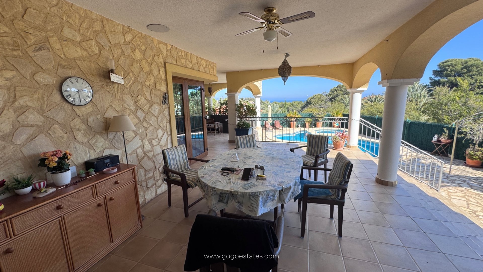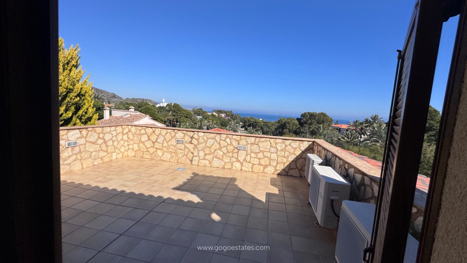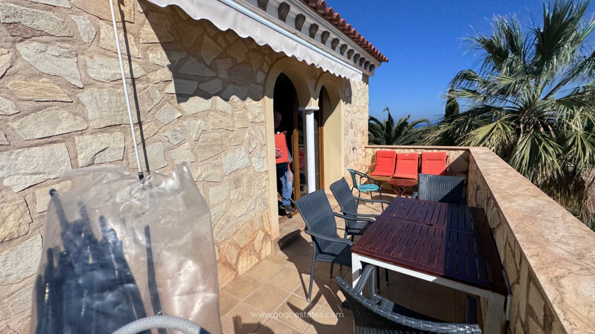 La villa cuenta con tres terrazas, cada una con su propio ambiente: