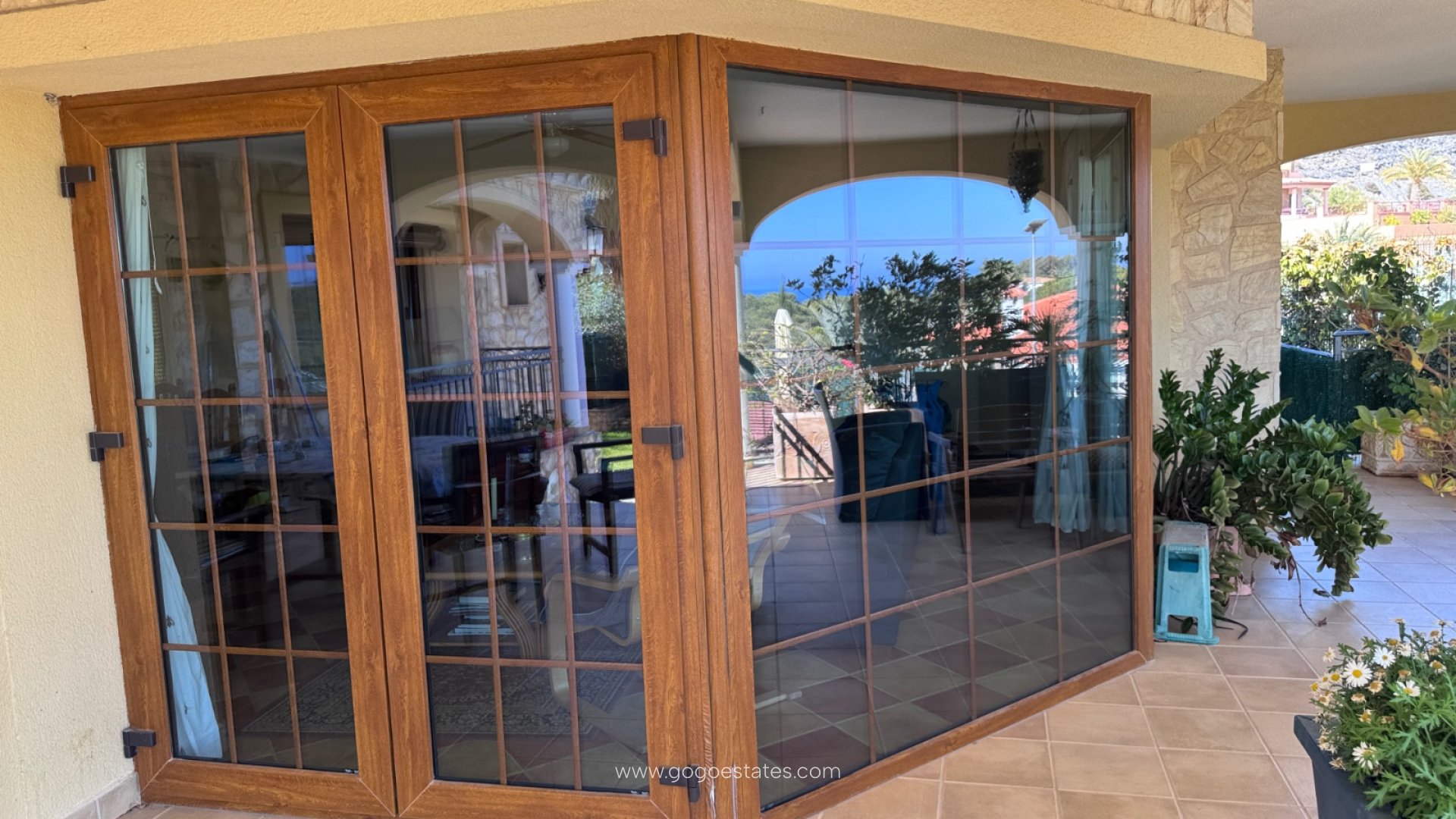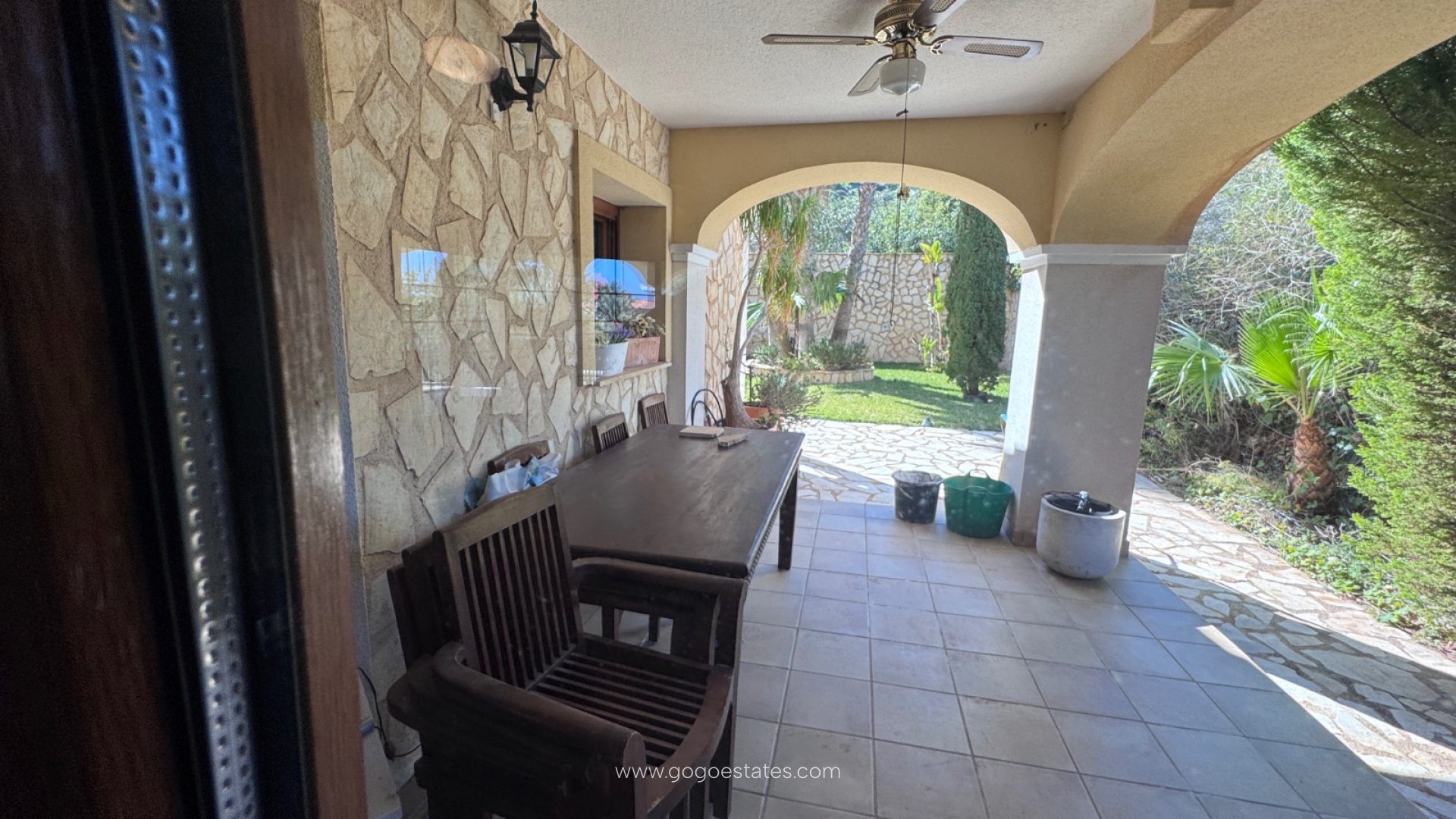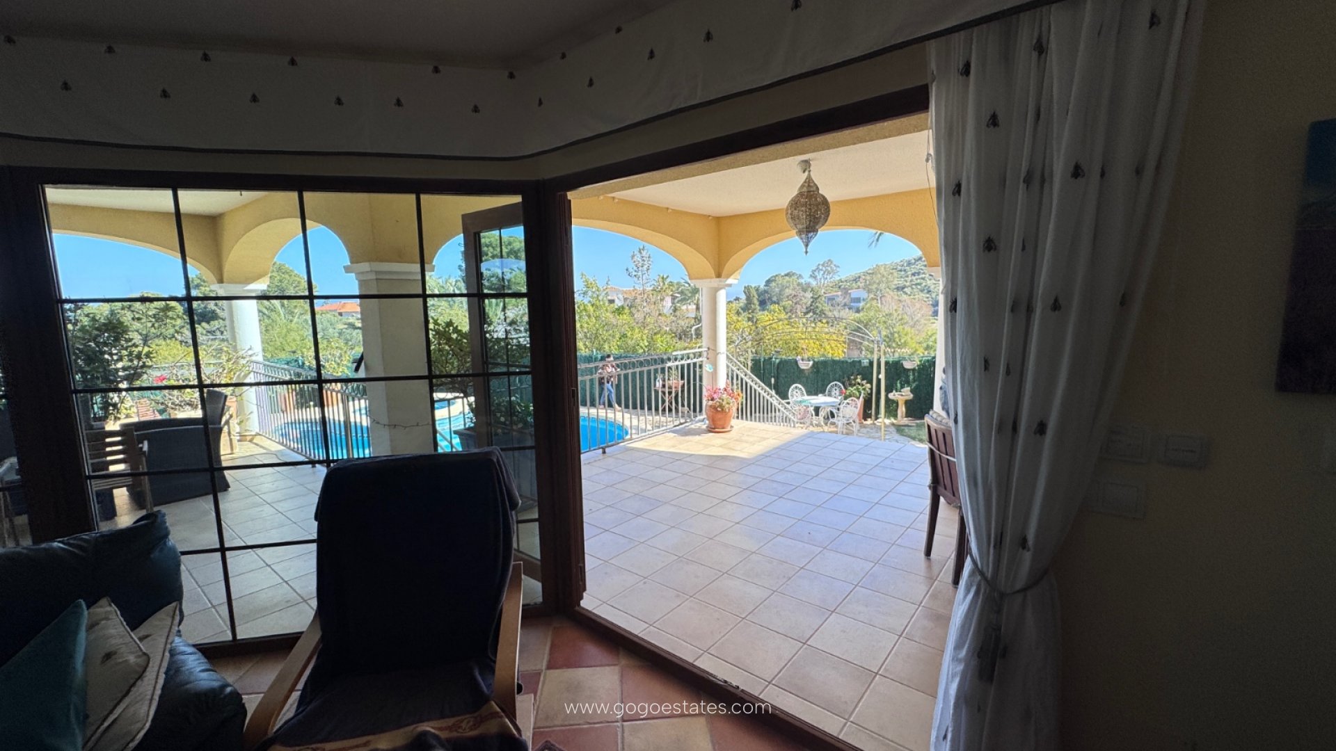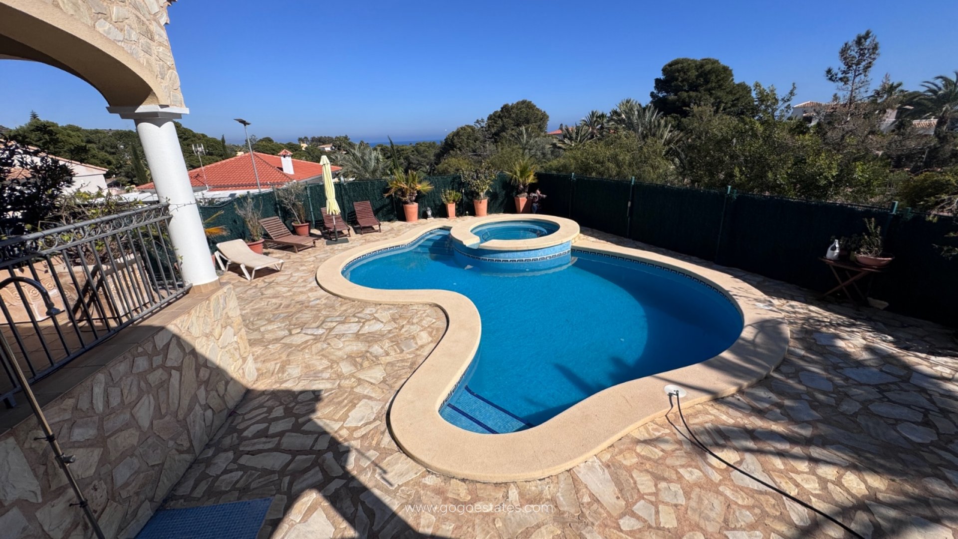 La villa cuenta con tres terrazas, cada una con su propio ambiente: