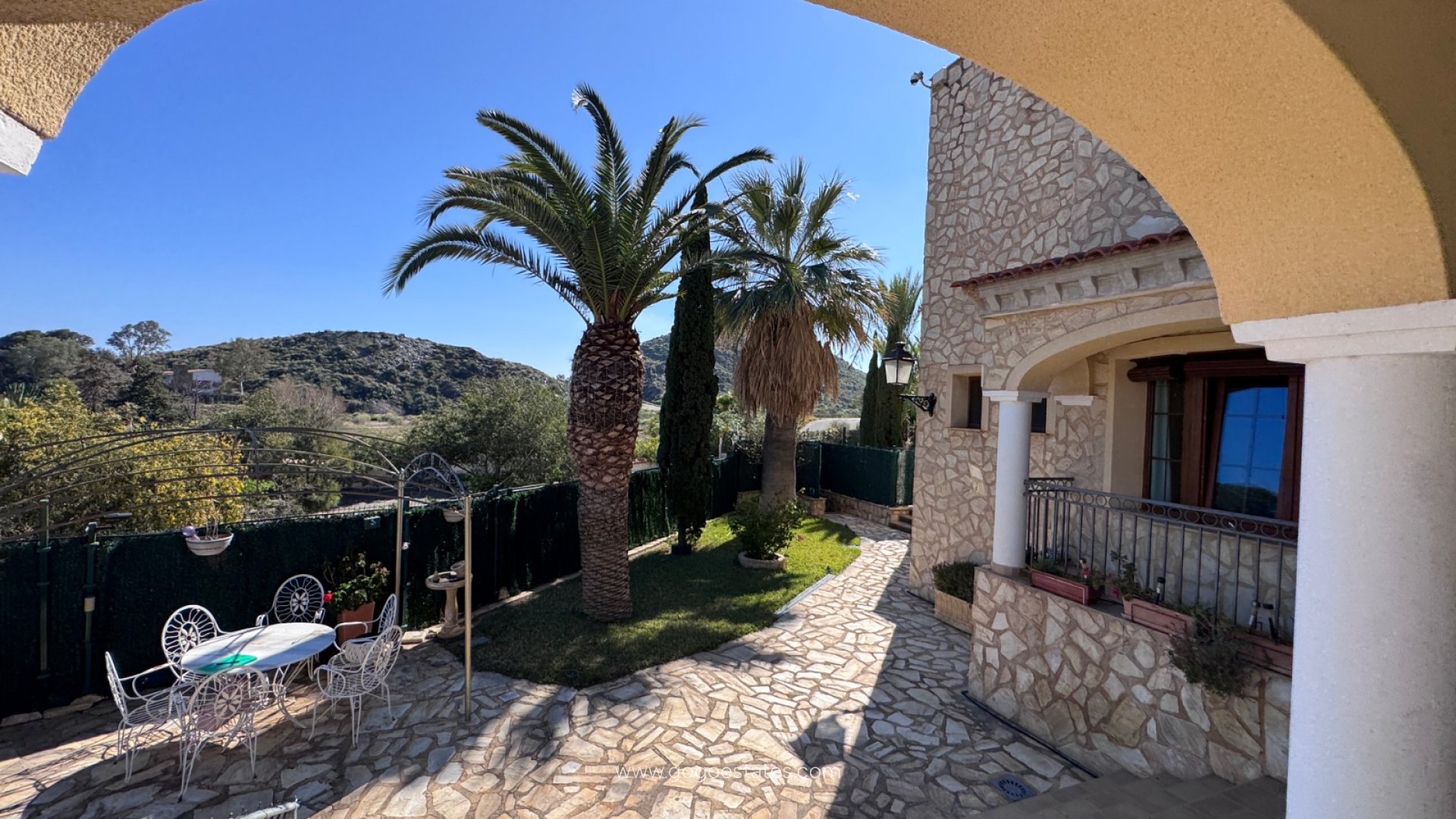 Su arquitectura se inspira en las construcciones defensivas tradicionales típicas del litoral de la Costa de Almería – fachadas de piedra maciza, arcos elegantes, muros sólidos y detalles en forma de torre que le confieren un carácter mediterráneo auténtico. Por un lado, las majestuosas montañas garantizan privacidad y tranquilidad. Por el otro, la vista se abre hacia el mar – a tan solo 300 metros en línea recta de la playa.