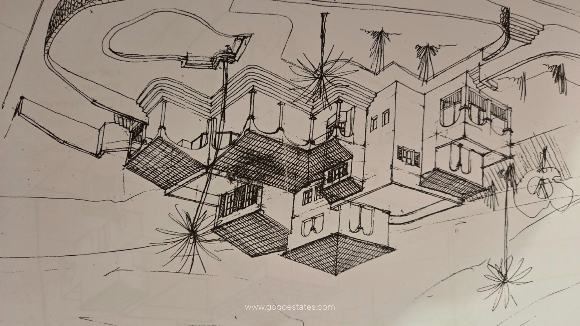 La propiedad se sitúa sobre una parcela de 1.200 m², cuidadosamente dividida en tres zonas armoniosas: