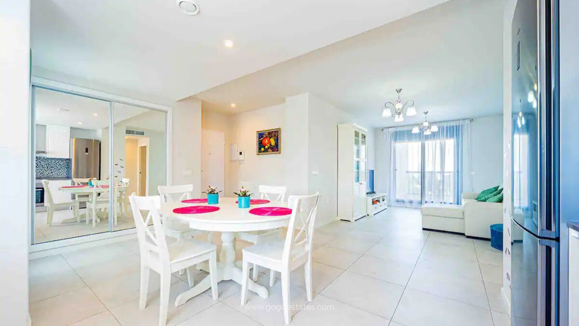 Apartamento de estilo moderno en Mil Palmeras, Orihuela Costa. Dispone de 3 dormitorios, que posteriormente han sido convertido en 2 dormitorios y amplio salón, cocina abierta, 2 baños. La vivienda se encuentra ubicada en un complejo cerrado con piscina comunitaria y bonitas zonas comunes. Dispone de plaza de parking subterráneo y trastero ( precio a consultar). A tan solo 5 minutos del centro comercial La Zenia Boulevard.