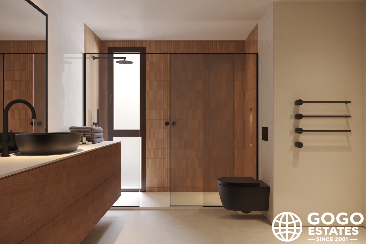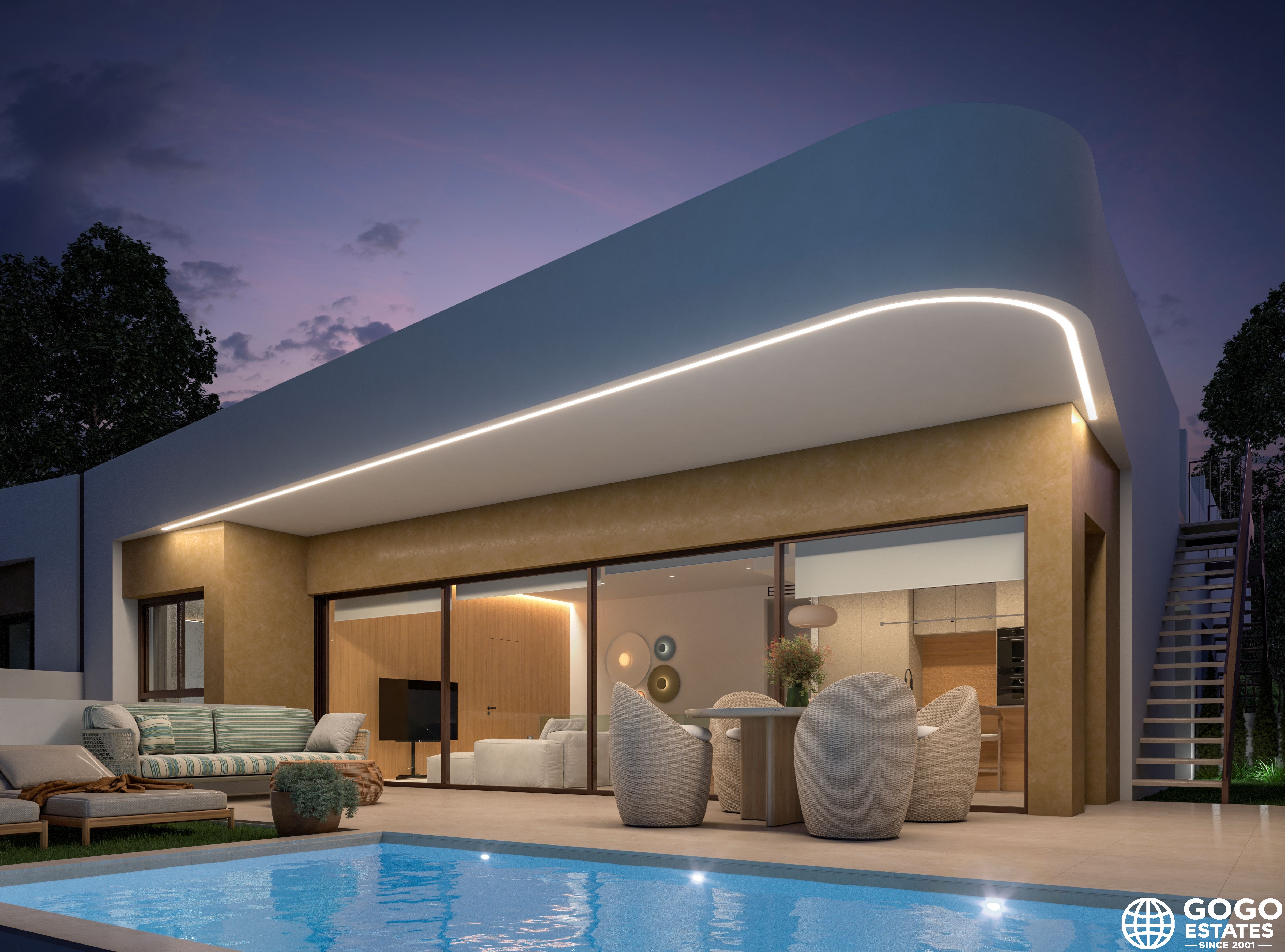 Cada casa cuenta con un jardín privado, perfecto para disfrutar del clima mediterráneo. Una piscina privada añade un toque de lujo, mientras que un solárium ofrece un espacio para tomar el sol. La terraza complementa las áreas exteriores, proporcionando espacio adicional para el ocio.