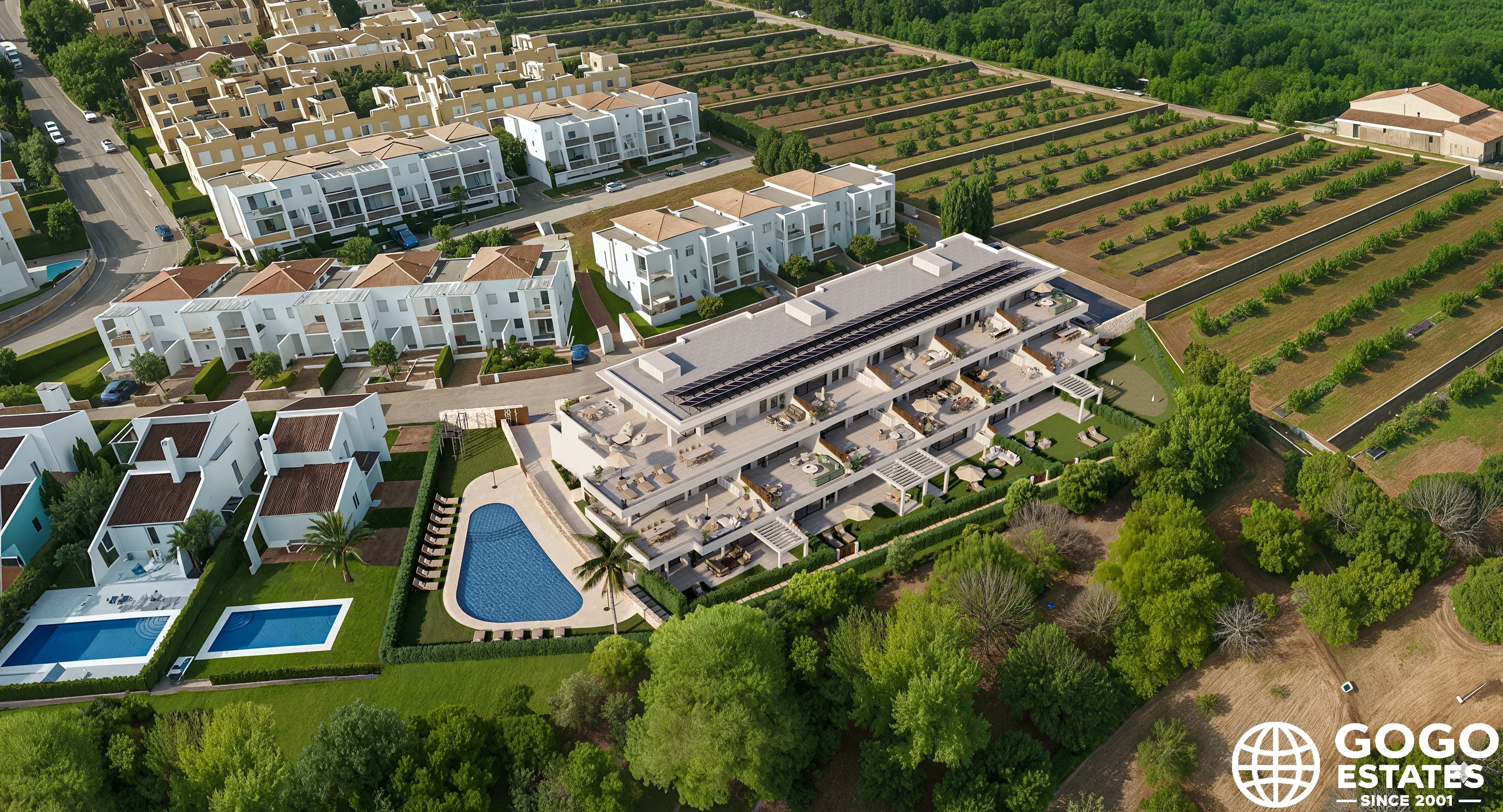 Cada vivienda cuenta con una terraza privada, perfecta para relajarse al aire libre y disfrutar del clima mediterráneo. La presencia de pérgolas añade un toque de elegancia y funcionalidad, permitiendo disfrutar de las áreas exteriores con sombra y protección.