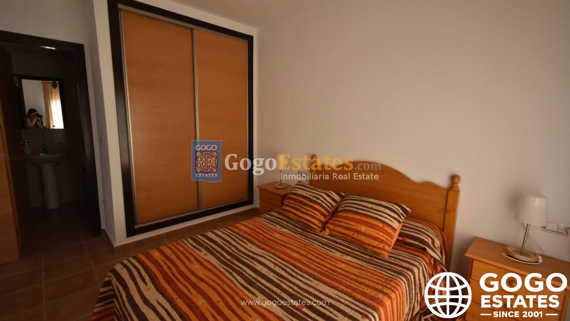 La suite principal cuenta con un baño en suite y acceso a una terraza relajante, perfecta para disfrutar del agradable entorno. Otras características incluyen armarios empotrados, aire acondicionado y un espacio de garaje.