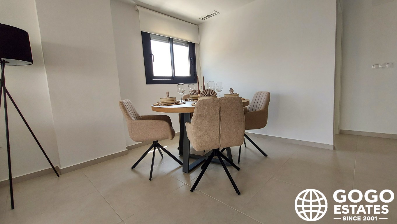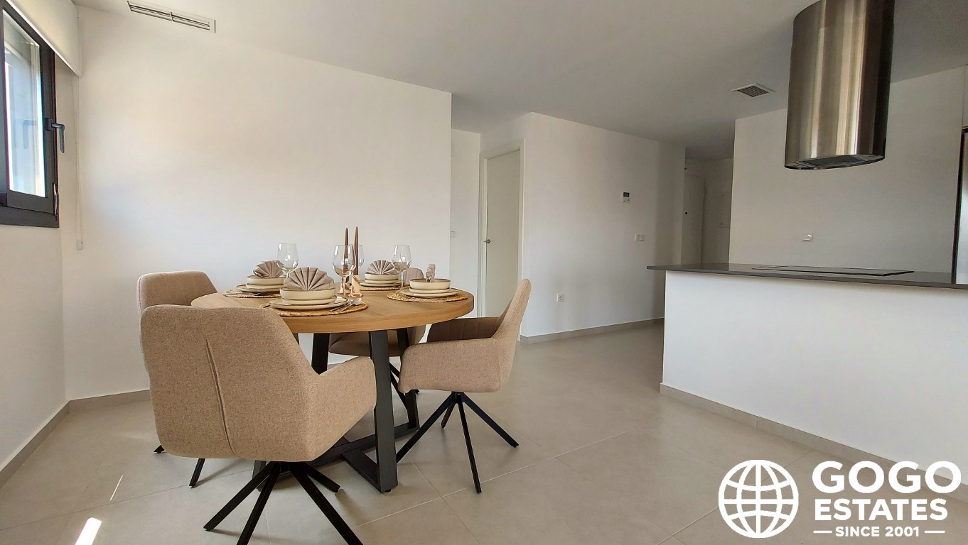 Ubicado en el encantador pueblo de San Miguel de Salinas, este complejo residencial ofrece una variedad de opciones de vivienda diseñadas para la comodidad y funcionalidad. Este apartamento de 2 habitaciones y 2 baños cuenta con aire acondicionado, armarios empotrados y electrodomésticos modernos para una experiencia de vida contemporánea. Los suelos de gres porcelánico añaden elegancia y durabilidad.