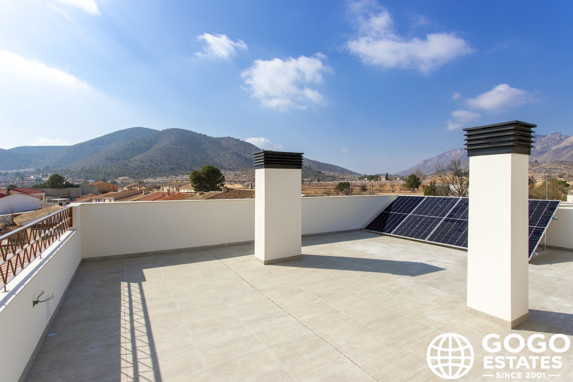 La propiedad incluye una terraza privada de 13 m², perfecta para disfrutar del clima mediterráneo. Un solárium proporciona espacio adicional para tomar el sol y apreciar las vistas panorámicas.