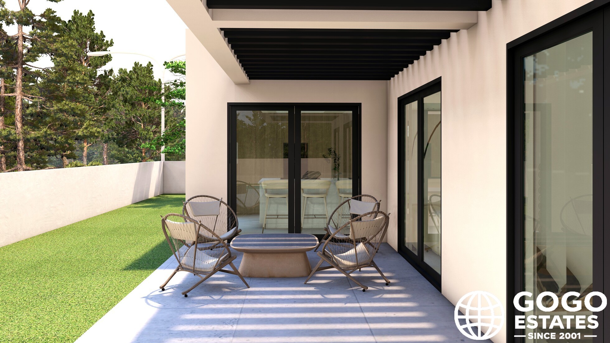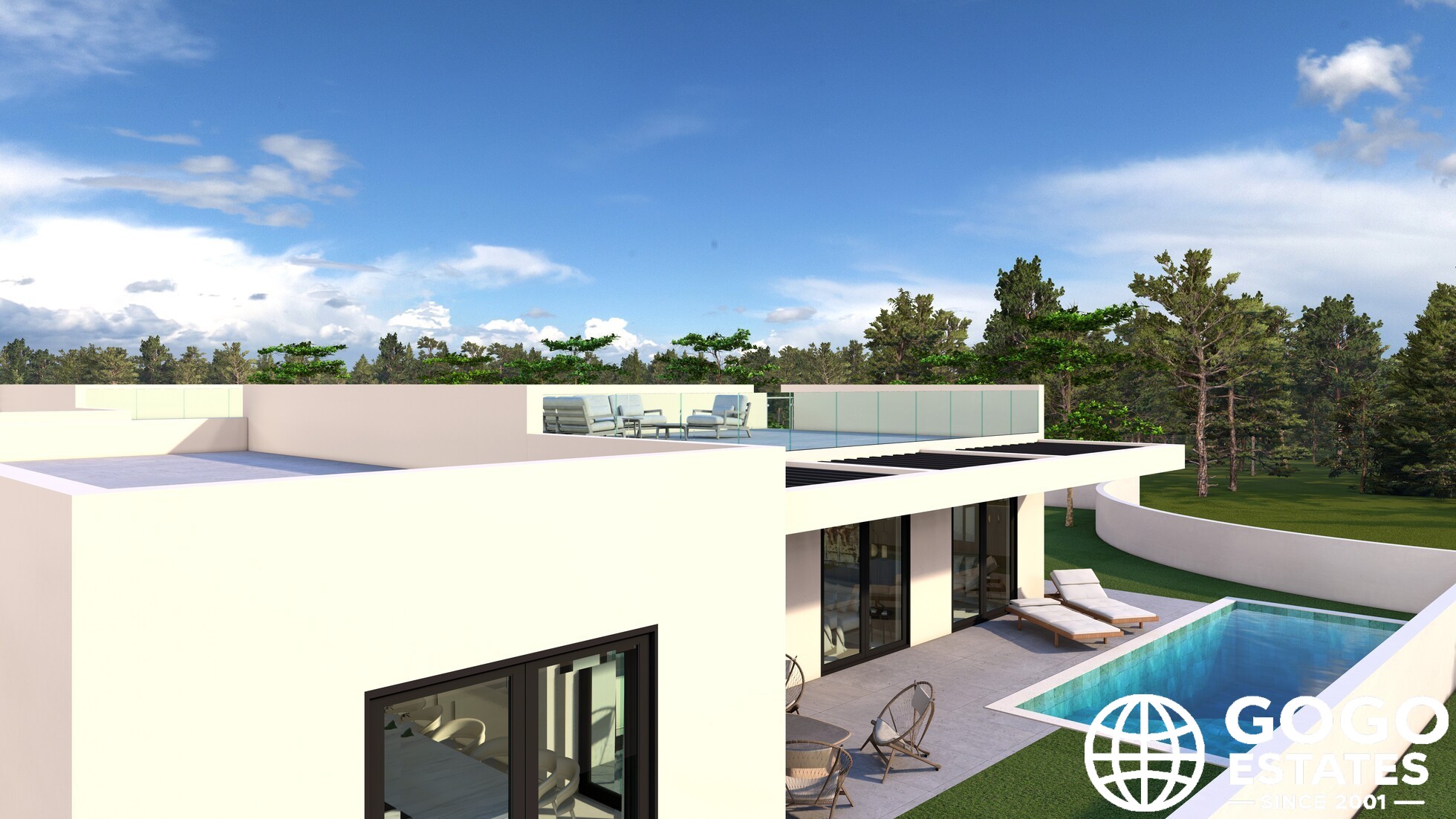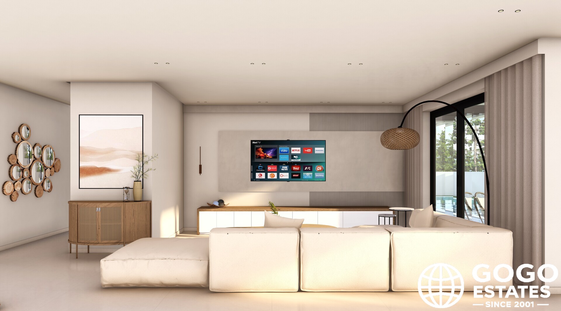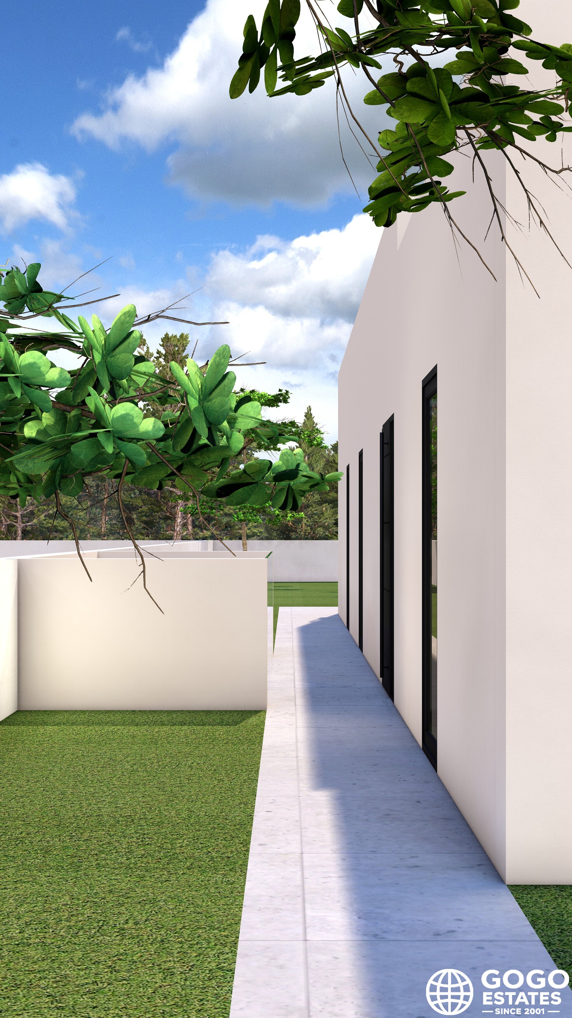 El diseño exterior integra la arquitectura moderna con el entorno natural. Cada hogar cuenta con una piscina privada y solárium, perfectos para disfrutar del clima mediterráneo. Un garaje privado garantiza comodidad y seguridad.