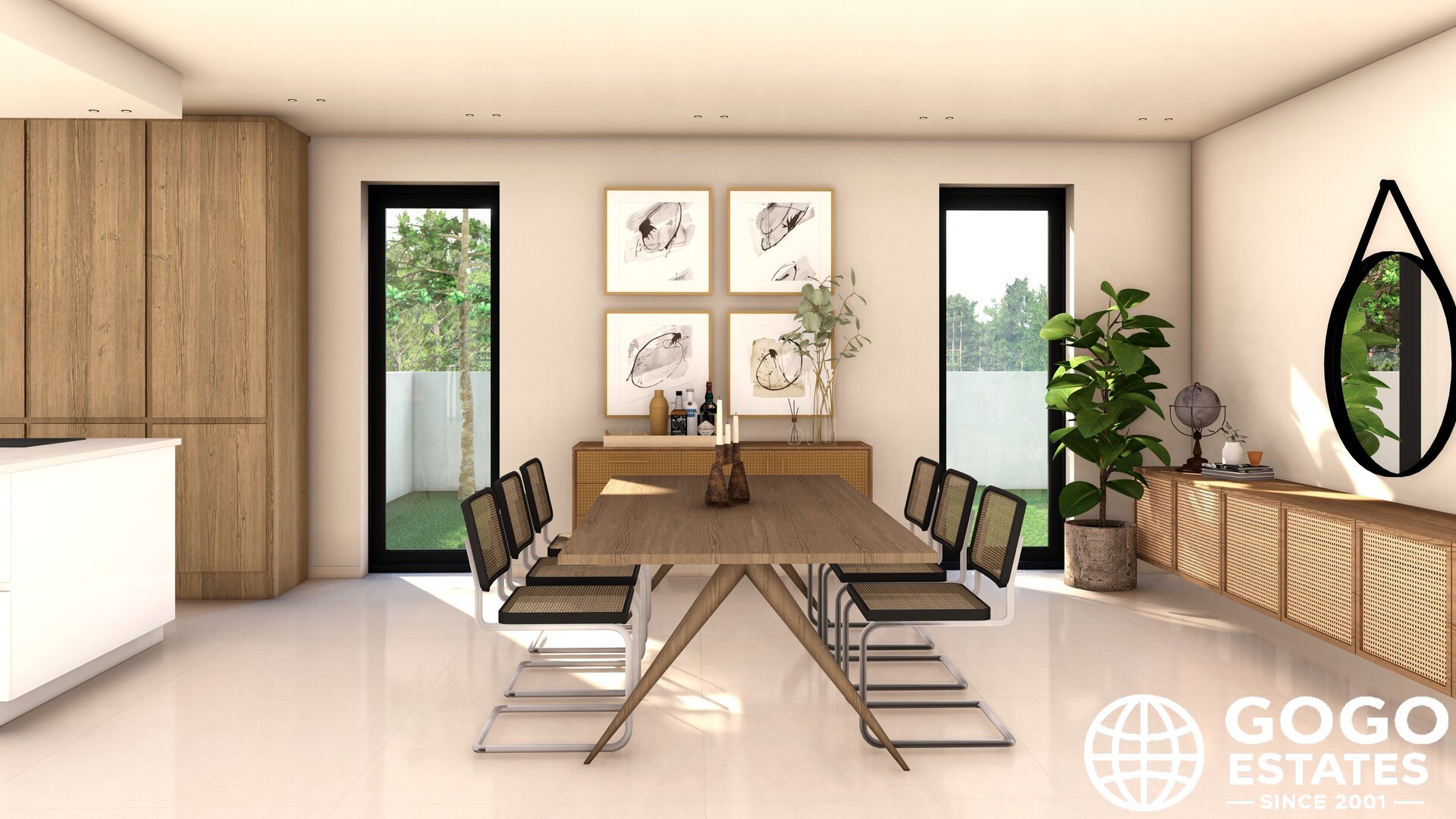 En el interior, las casas ofrecen el máximo confort con cocinas modernas, armarios empotrados y aire acondicionado preinstalado. El videoportero añade seguridad, mientras que 3 baños aseguran privacidad para todos los miembros de la familia.