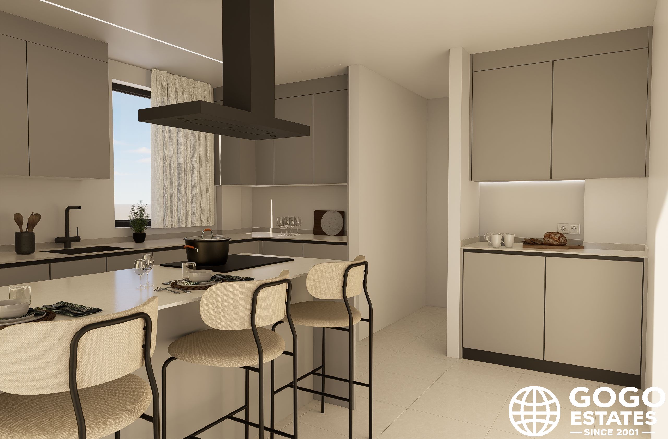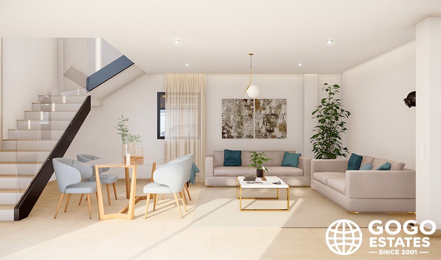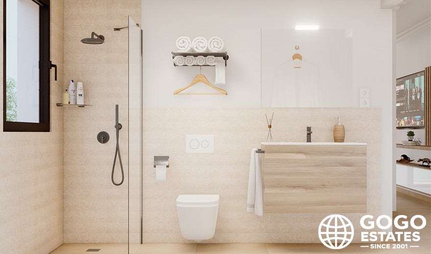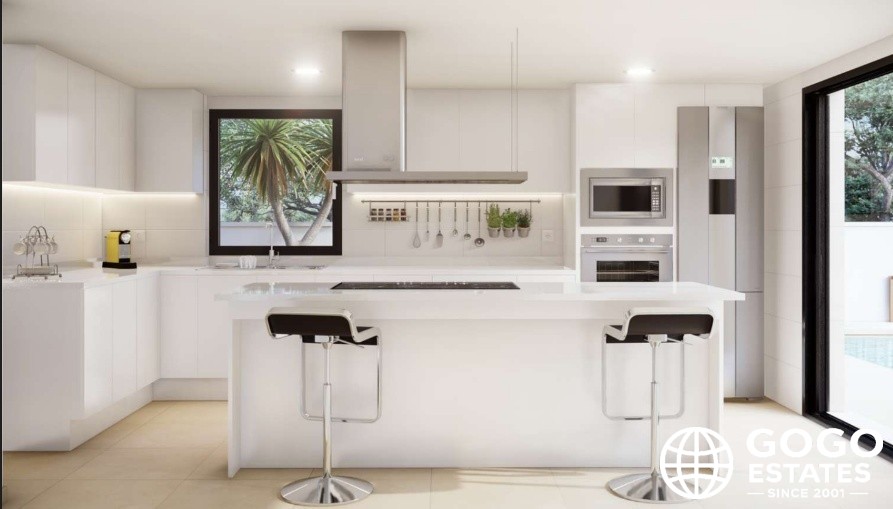 El interior de la casa está diseñado para el máximo confort, con suelos de porcelanato, persianas eléctricas y un video portero. Los armarios empotrados y la preinstalación de aire acondicionado añaden comodidad.