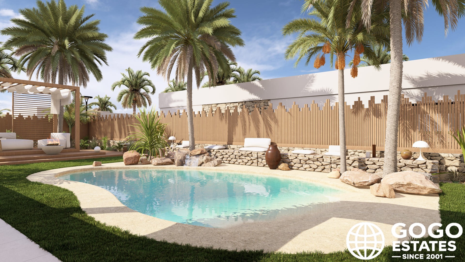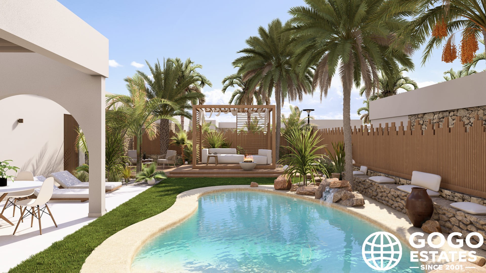 El diseño exterior refleja elegancia, con un jardín privado y una amplia terraza, perfectos para disfrutar del clima mediterráneo de Murcia. La casa está equipada con una piscina privada y estacionamiento opcional.