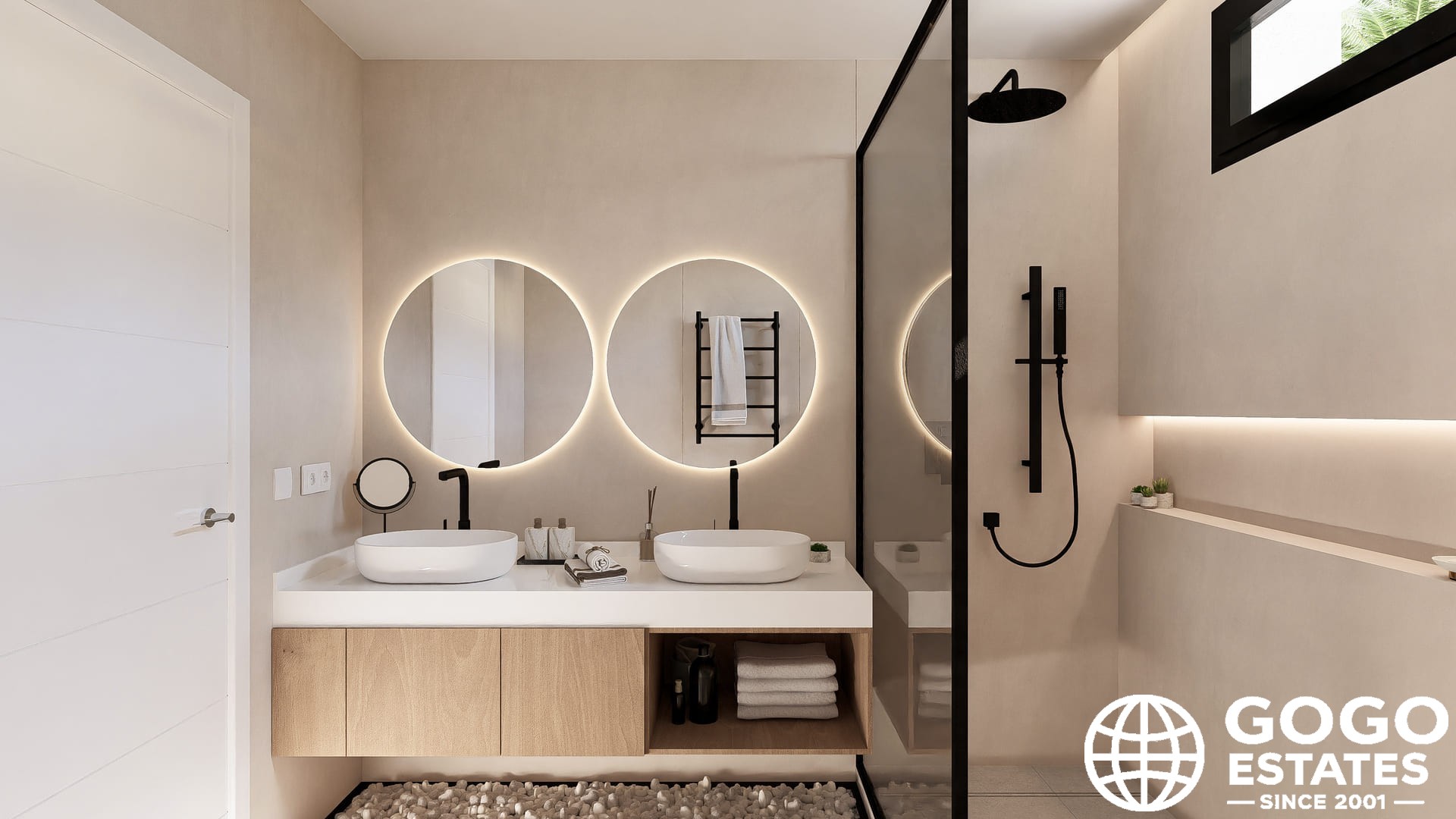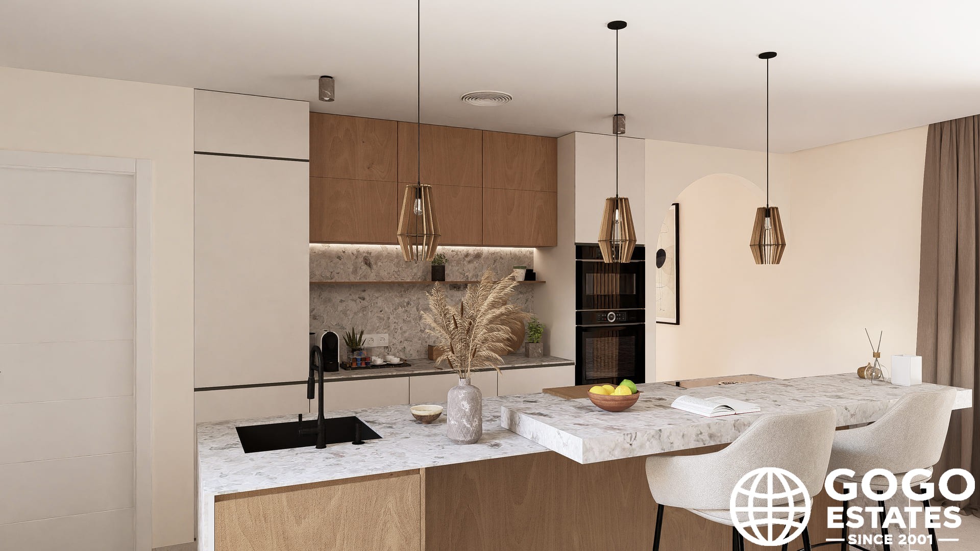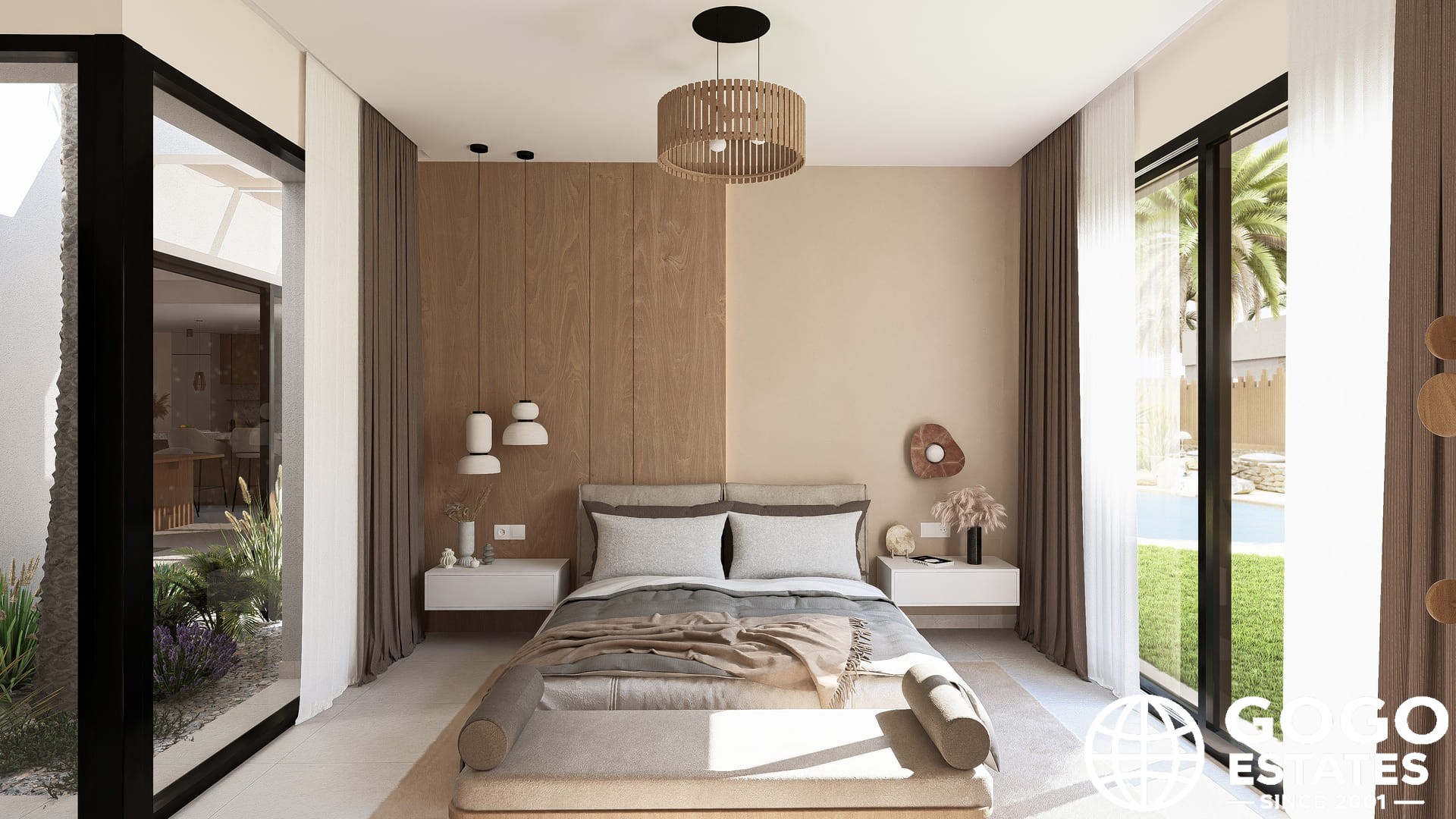 En el interior, la propiedad cuenta con suelos de porcelana, electrodomésticos de última generación y un sistema de domótica. Los armarios empotrados y la calefacción por suelo radiante mejoran la comodidad y la funcionalidad.
