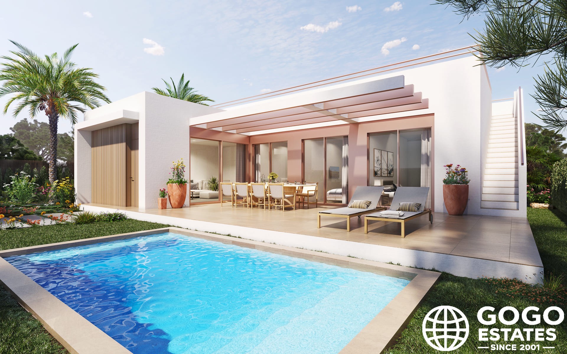 Las casas cuentan con un diseño exterior que combina elegancia y funcionalidad. Cada propiedad tiene un jardín privado y una amplia terraza, perfecta para disfrutar del clima mediterráneo. La inclusión de una piscina privada añade un toque de lujo, mientras que el solárium proporciona un espacio ideal para relajarse.