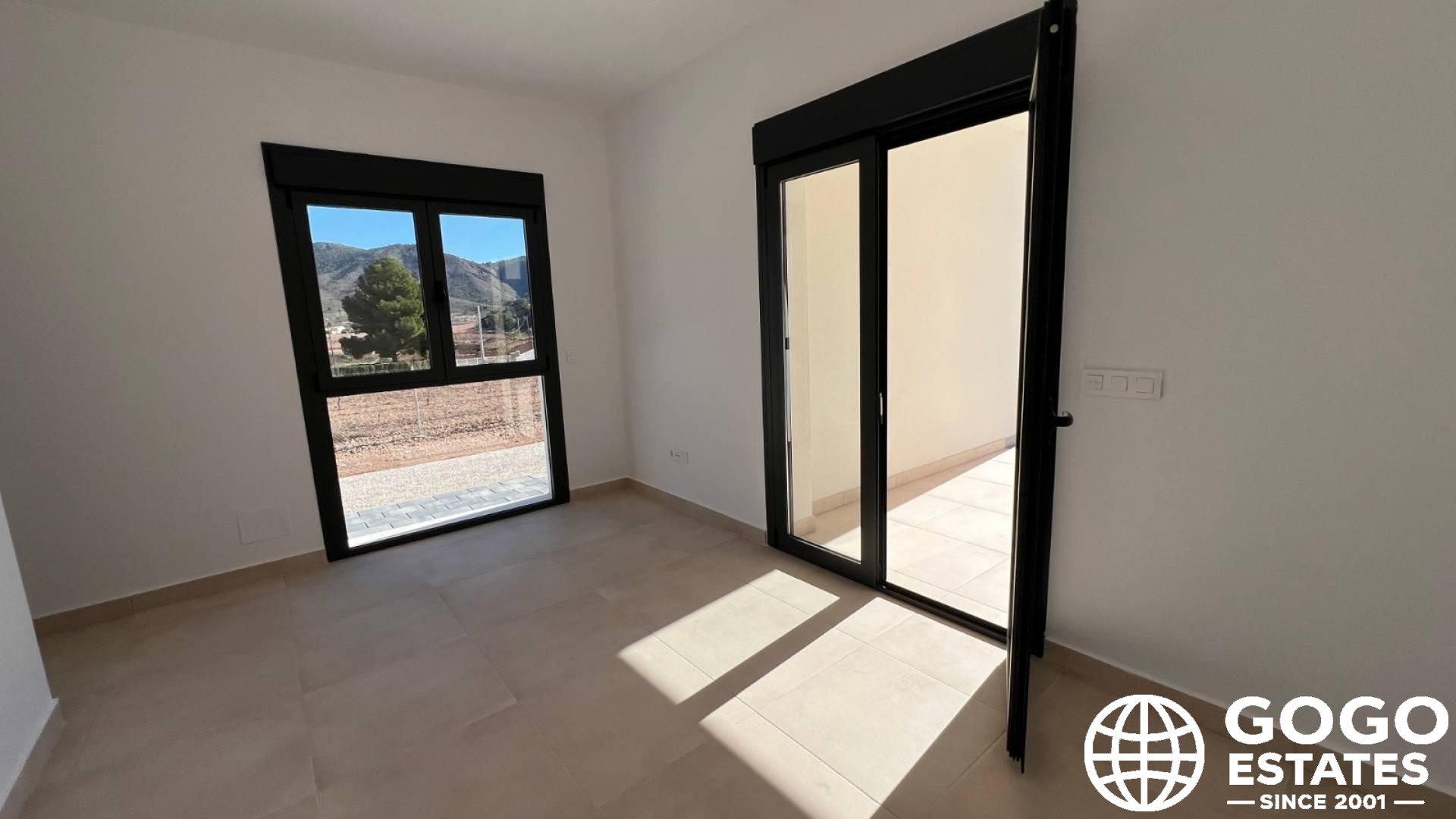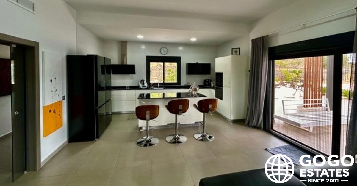 Los interiores están diseñados para la comodidad y la funcionalidad, con tres dormitorios y dos baños. Los acabados de calidad incluyen suelos de gres porcelánico y persianas eléctricas. La cocina moderna está equipada con electrodomésticos para satisfacer las necesidades culinarias, y el aire acondicionado garantiza un ambiente agradable durante todo el año.